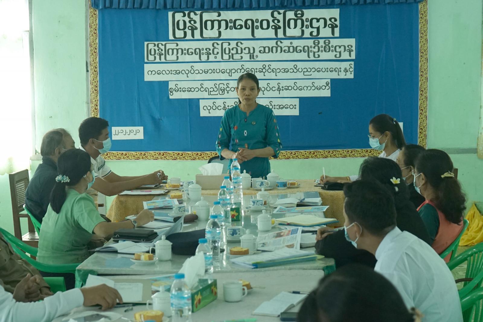 ရှေးဦးစွာ လုပ်ငန်းညှိနှိုင်းအစည်းအဝေးတွင် တိုင်းဒေသကြီးကလေးအလုပ်သမား ပပျောက်ရေးဆိုင်ရာ အသိပညာပေးရေးနှင့်စွမ်းဆောင်ရည်မြှင့်တင်ရေး လုပ်ငန်းဆပ်ကော်မတီ အတွင်းရေးမှူး၊ တိုင်းဒေသကြီး ပြန်/ဆက်ဦးစီးမှူး ဒေါ်မာလာဝင်း က မိမိတို့လုပ်ငန်းကော်မတီ သည် တိုင်းဒေသကြီးအစိုးရအဖွဲ့၏ ကလေးအလုပ်သမားပပျောက်ရေးဆိုင်ရာ လုပ်ငန်းဆပ် ကော်မတီ (၈)ရပ်အနက် အသိပညာပေးရေးနှင့် စွမ်းဆောင်ရည်မြှင့်တင်ရေး လုပ်ငန်းများ ဆောင်ရွက်ရမည် ကော်မတီဖြစ်သည့်အတွက် ကလေးအလုပ်သမားပပျောက်ရေးဆိုင်ရာလုပ်ငန်း များနှင့် ပတ်သက်၍ ပြည်သူများ ကျယ်ကျယ်ပြန့်ပြန့် သိရှိနိုင်ရေးအတွက် ဟောပြောပွဲများ ဆောင်ရွက်ခြင်း၊ လက်ကမ်းစာစောင်များ ဖြန့်ဝေခြင်းနှင့် ကလေးအလုပ်သမားပပျောက်ရေးဆိုင်ရာ ဆိုင်းဘုတ်များ စိုက်ထူနိုင်ရေးအတွက် ဆောင်ရွက်လျက်ရှိပါကြောင်းနှင့် ကော်မတီ အဖွဲ့ဝင်များအနေဖြင့် ဝိုင်းဝန်းအကြံပြုပေးစေလိုကြောင်း ပြောကြားသည်။