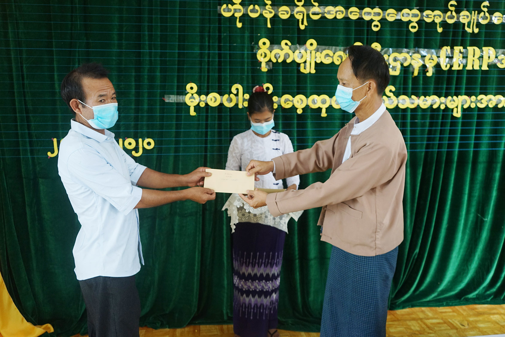 “ဝ”ကိုယ်ပိုင်အုပ်ချုပ်ခွင့်ရတိုင်း၊ ဟိုပန်ခရိုင်၊ ဟိုပန်မြို့၌ ခရိုင်စိုက်ပျိုးရေးဦးစီးဌာနမှ Covid-19 ကာကွယ် ထိန်းချုပ်ကုသရေးနှင့် Covid-19 စီးပွားရေးကုစားမှုအစီအစဉ်(CERP)အရ မိုးစပါး (RS-CS) မျိုးစေ့ ထုတ်လုပ်ငန်း ဆောင်ရွက်နေသော တောင်သူများအား မျိုးစေ့ဘိုးနှင့် စိုက်ပျိုးစရိတ် ထောက်ပံ့ ငွေပေးအပ်ပွဲကို ခရိုင်အထွေထွေအုပ်ချုပ်ရေးဦးစီးဌာန အစည်းအဝေးခန်းမတွင် ယမန်နေ့နံနက် ၁၀ နာရီ အချိန်က ပြုလုပ်ခဲ့သည်။