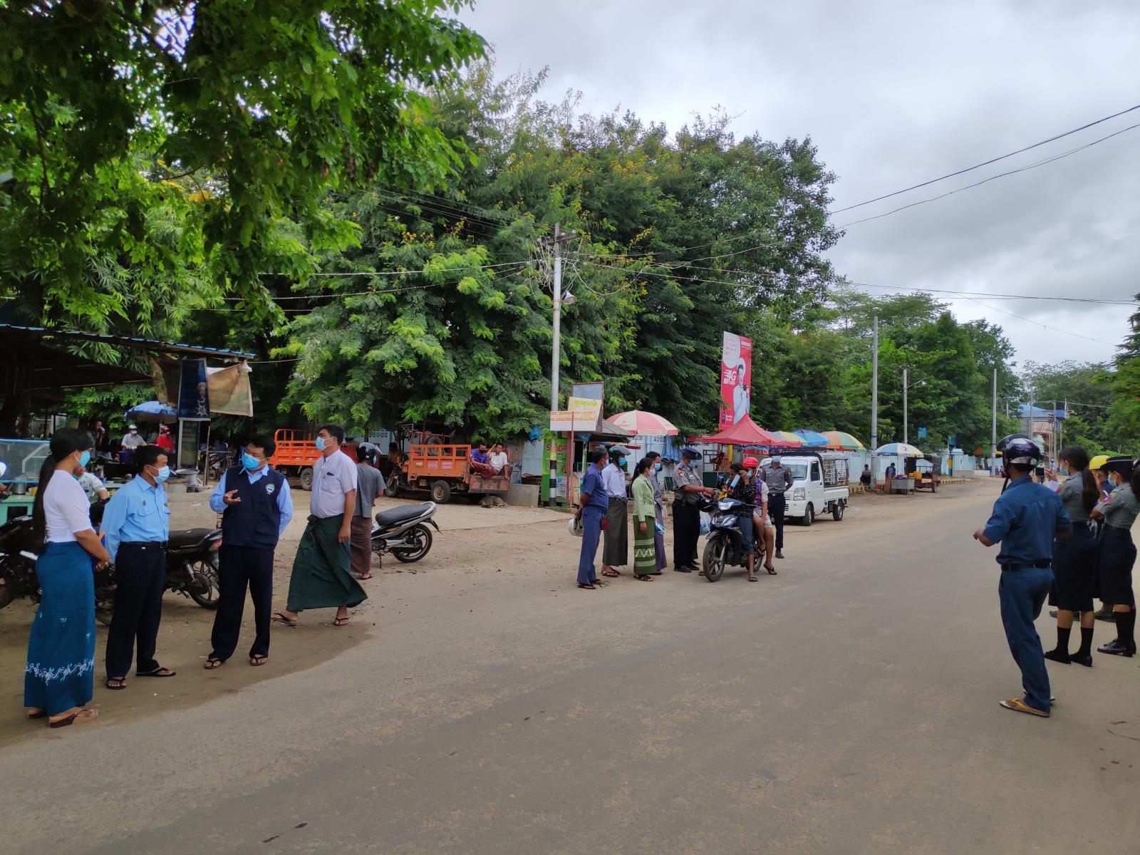 ထိုသို့ဆောင်ရွက်စဉ် နေရပ်သို့ ပြန်လည်ရောက်ရှိလာကြသူများနှင့် ခရီးသွားပြည်သူများအား ကူးစက်မြန် ကိုဗစ်-၁၉ ရောဂါ ကာကွယ်တားဆီးနိုင်ရေးအတွက် ကျန်းမာရေးစစ်ဆေးခြင်း၊ ကိုယ်အပူချိန်တိုင်းကိရိယာဖြင့် တိုင်းတာပေးခြင်း များ ဆောင်ရွက်၍ တတ်နိုင်သမျှ အိမ်တွင် နေကြရန်၊ လူစုလူဝေးရှိရာနေရာများသို့ မလိုအပ်ဘဲ မသွားကြပါရန်၊ တစ်ဦးနှင့်တစ်ဦး အနည်းဆုံး ၆ ပေ အကွာမှသာ ပြောဆိုဆက်ဆံကြပါရန်၊ အပြင်ထွက်သည့်အခါတိုင်း နှာခေါင်းစည်း (Mask)ကို စနစ်တကျ မပျက်မကွက် တပ်ဆင်ကြပါရန်၊အပြင်မှ ပြန်လာပါက လက်ကို ဆပ်ပြာနှင့် စက္ကန့် ၂၀ ကြာအောင်ဆေးကြောရန် အသိပညာများပေးခဲ့ပြီးမြို့တွင်းသို့ ဝင်ရောက်ဖြတ်သန်းသွားလာသော ခရီးသည်တင် မော်တော်ယာဉ်များကို ဩဂုတ်လ ၂၆ ရက်နေ့မှ စတင်၍ ကျန်းမာရေး စစ်ဆေးမှုများကို အရှိန်အဟုန်မြှင့် ဆောင်ရွက် သွားမည် ဖြစ်ကြောင်းသိရသည်။