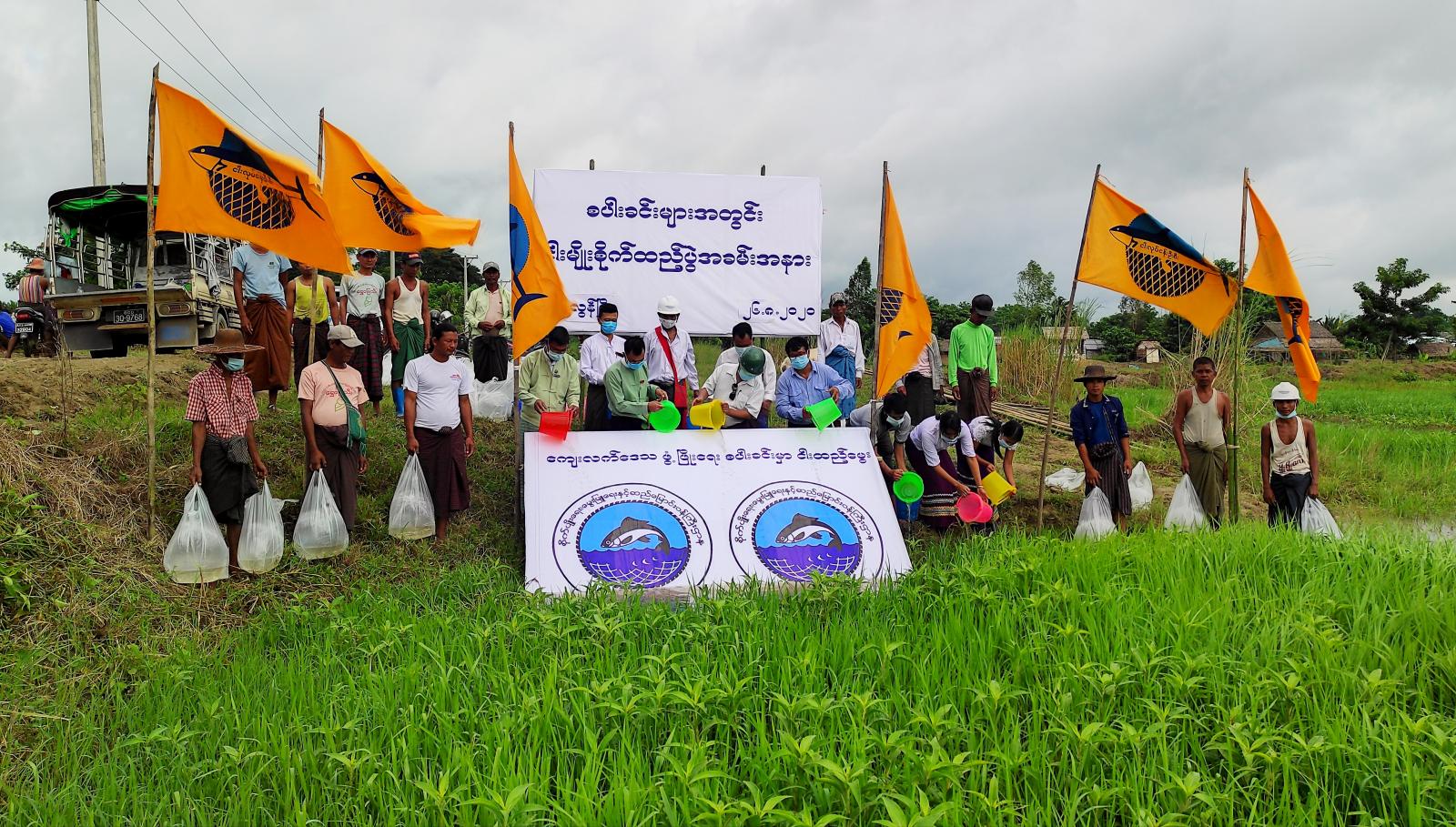 အဆိုပါ ငါးမျိုးစိုက်ထည့်ပွဲသို့ မြို့နယ်အုပ်ချုပ်ရေးမှူး ဦးမျိုးသက်အောင်နှင့် ဌာနဆိုင်ရာအကြီးအကဲများ၊ ဟင်္သာတခရိုင် ငါးလုပ်ငန်းဦးစီးမှူး ဦးတင့်လွင်၊ မြို့နယ်ငါးလုပ်ငန်း ဦးစီးမှူး ဦးမင်းဇော်နှင့် တောင်သူများ တက်ရောက်ကြပြီး ငါးရိက္ခာ ဖူလုံစေရေး၊ ငါးစဉ်ဆက်မပြတ် ထုတ်လုပ် နိုင်ရေးအတွက် ငါးသယံဇာတ ထိန်းသိမ်းသည့် အနေဖြင့် စပါးခင်းအတွင်းသို့ ငါးခုံမကြီးသားပေါက် အကောင်ရေ (၁၀၀,၀၀၀) စိုက်ထည့်ခဲ့ကြောင်း သိရသည်။