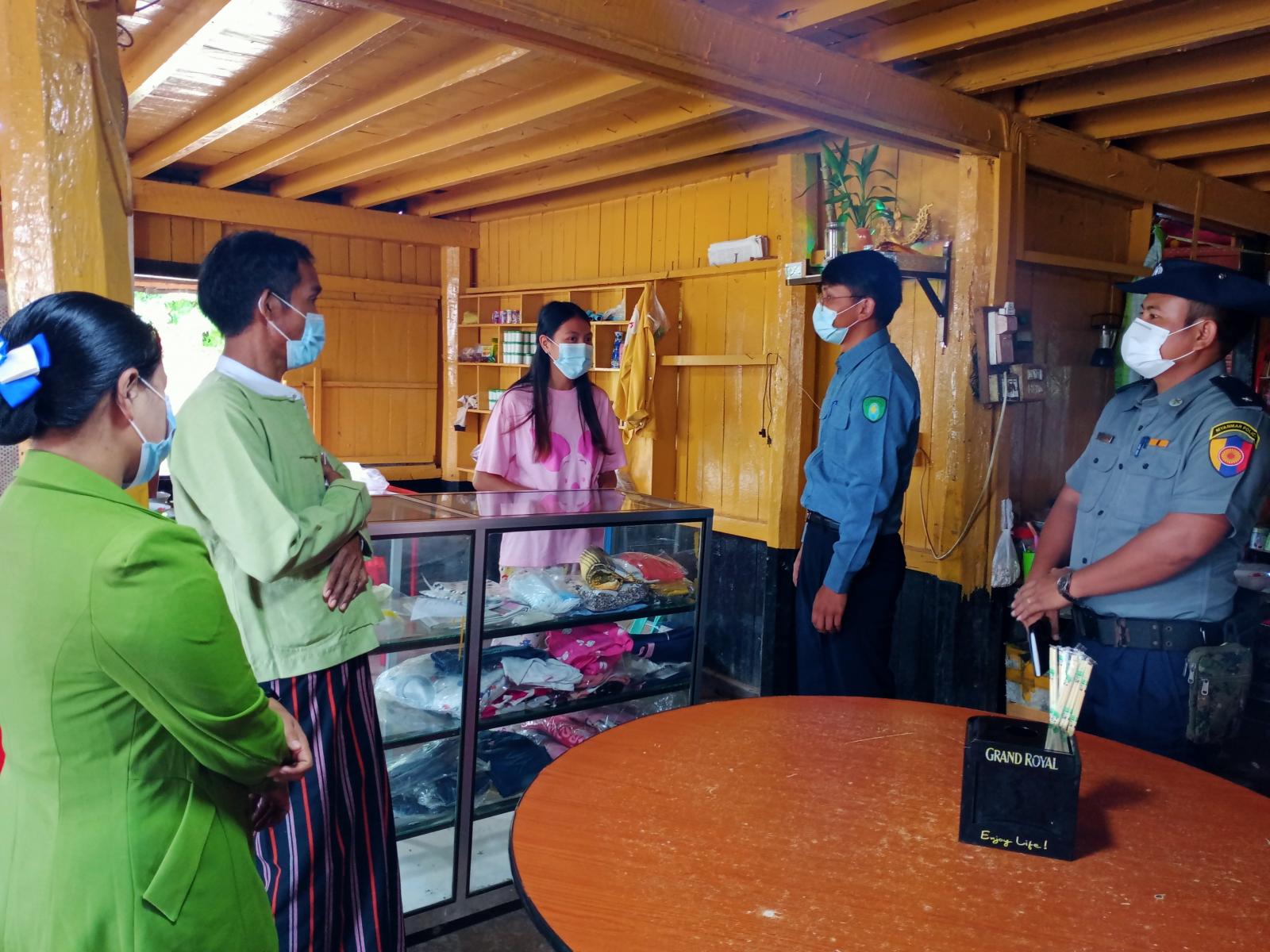 ထိုသို့စစ်ဆေးရာတွင် အထွေထွေအုပ်ချုပ်ရေး ဦးစီးဌာနမှ တာဝန်ရှိသူများ၊ မြို့နယ်ခွဲစည်ပင် သာယာရေး ဌာနမှတာဝန်ခံ ဦးအောင်သက်ပိုင်နှင့် ဝန်ထမ်းများ၊ မြို့အဆင့် ကိုဗစ်-၁၉ ရောဂါ ကာကွယ်၊ ထိန်းချုပ်၊ ကုသရေး လုပ်ငန်း ကော်မတီဝင်များ၊ ရပ်ကွက် အုပ်ချုပ်ရေးမှူးနှင့် တာဝန်ရှိသူများက စားသောက်ဆိုင်များတွင် လက်ဆေး ဘေစင်များ၊ လက်သန့်ဆေးရည်များ ထား ရှိခြင်း ရှိ/မရှိစစ်ဆေးခြင်း၊ စားသောက်ဆိုင် ပိုင်ရှင်များ နှာခေါင်းစည်း တပ်ဆင်ခြင်းရှိ/မရှိ စစ်ဆေးခြင်းနှင့် ဆိုင်ထိုင်စားသုံးသူများအား (၃)ပေအကွာ နေရာထိုင်ခင်းများ စီစဉ်ထားရှိခြင်း ရှိ/မရှိ တို့ကို ရှောင်တခင် ကွင်းဆင်းစစ်ဆေးကြောင်း သိရသည်။