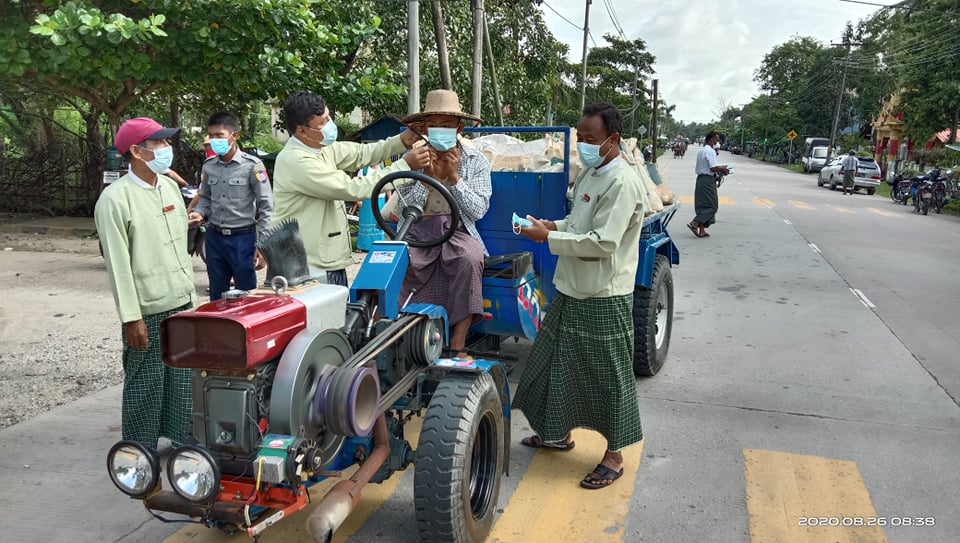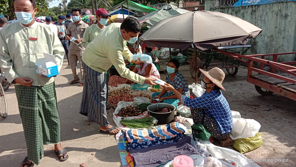 ဧရာဝတီတိုင်းဒေသကြီး၊ ဖျာပုံခရိုင်၊ ကျိုက်လတ်မြို့နယ်တွင် ကူးစက်မြန် ကိုဗစ်-၁၉ရောဂါ ကူးစက်ပြန့်ပွားမှု မရှိစေရေးနှင့် ပြည်သူများနှာခေါင်းစည်း စနစ်တကျတပ်ဆင်ရန်အတွက် ယနေ့နံနက် ၈ နာရီက ၂၈ လမ်း၊ အောက်ရွာလေးဈေးနှင့် အ.ထ.က(၁) ကျောင်းအနီး လမ်းဆုံတွင် နှာခေါင်းစည်း(Mask) များကို အခမဲ့ဝေငှ ပေးခဲ့သည်။