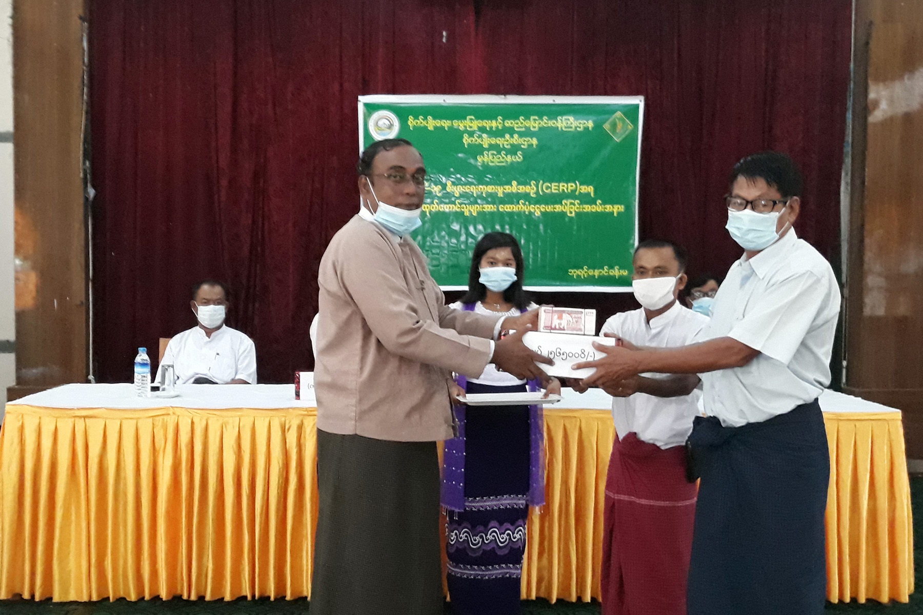 မွန်ပြည်နယ် သံဖြူဇရပ်မြို့နယ် စိုက်ပျိုးရေးဦးစီးဌာနမှ ကိုဗစ်-၁၉ စီးပွားရေးကုစားမှု (CERP) အစီအစဉ်အရ စပါးမျိုးစေ့ထုတ် လုပ်ငန်းဆောင်ရွက်မည့် တောင်သူများအား ထောက်ပံ့ငွေပေး အပ်ခြင်းကို ယနေ့ နံနက် ၁ဝ နာရီက မြို့နယ်အထွေထွေအုပ်ချုပ်ရေးဦးစီးဌာန ဘုရင့်နောင်ခန်းမ၌ ကျင်းပရာ မော်လမြိုင်ခရိုင် စိုက်ပျိုးရေးဦးစီးဌာနမှူး၊ မြို့နယ်စိုက်ပျိုးရေးဦးစီးဌာနမှူးနှင့် ဝန်ထမ်းများ၊ တောင်သူ များ တက်ရောက်ခဲ့ကြသည်။