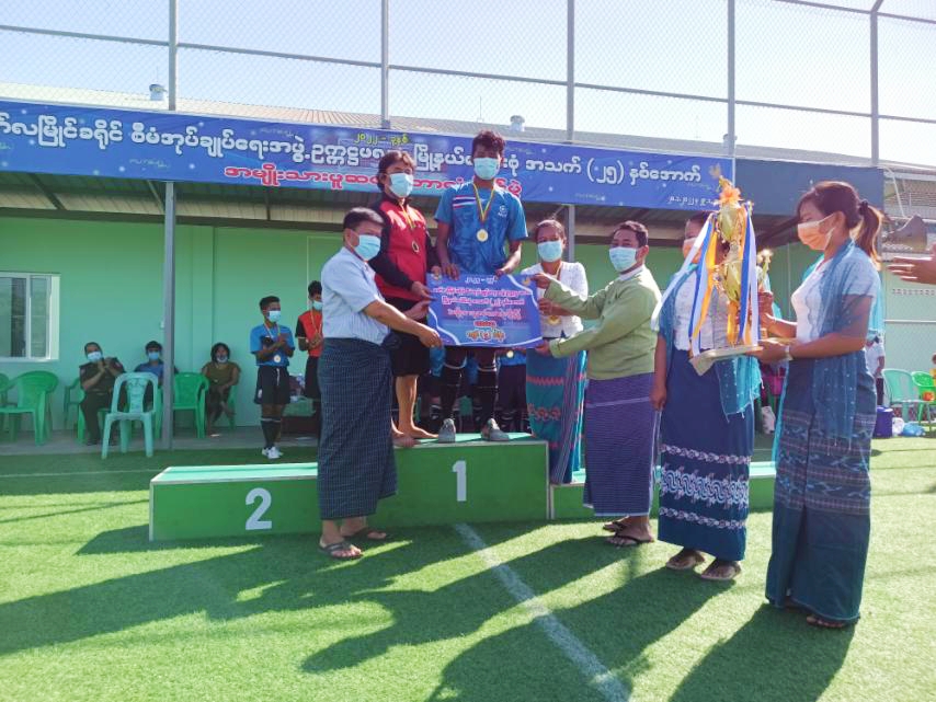 ထို့နောက် ဆုရရှိသည့်အသင်းများအား မော်လမြိုင်ခရိုင်စီမံ အုပ်ချုပ်ရေးအဖွဲ့ဥက္ကဋ္ဌ ဦးမြတ်ယု၊ မွန်ပြည်နယ် အားကစားနှင့် ကာယပညာဦးစီးဌာန ညွှန်ကြားရေးမှူး ဦးခင်ဇော်၊ မုဒုံမြို့နယ် စီမံအုပ်ချုပ်ရေးအဖွဲ့ဥက္ကဋ္ဌ၊ သံဖြူဇရပ်မြို့နယ် စီမံအုပ်ချုပ်ရေးအဖွဲ့ဥက္ကဋ္ဌနှင့် သက်ဆိုင်ရာ တာဝန်ရှိသူများက ပထမဆု၊ ဒုတိယဆု၊ ပူးတွဲတတိယဆုနှင့် အကောင်းဆုံး အားကစားသမားဆုတို့ကို အသီးသီးပေးအပ်ချီးမြှင့်ခဲ့ကြကြောင်း သိရသည်။
