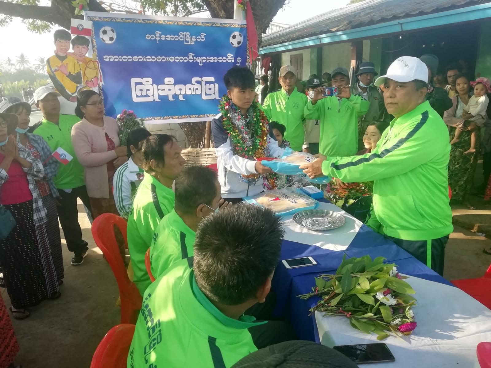 ထို့နောက် မြို့နယ်အားကစားသမားဟောင်းများအသင်းမှ တစ်ဦးလျှင် ဂုဏ်ပြုဆုငွေကျပ်တစ်သိန်းနှင့် ထရက်စုဝတ်စုံတစ်စီဖြင့် ဂုဏ်ပြုကြပြီး အားကစားသမားဟောင်းများအသင်းဥက္ကဋ္ဌ ဦးစောတင်မှ နှုတ်ဆက်ဂုဏ်ပြုစကားပြောကြားသည်။