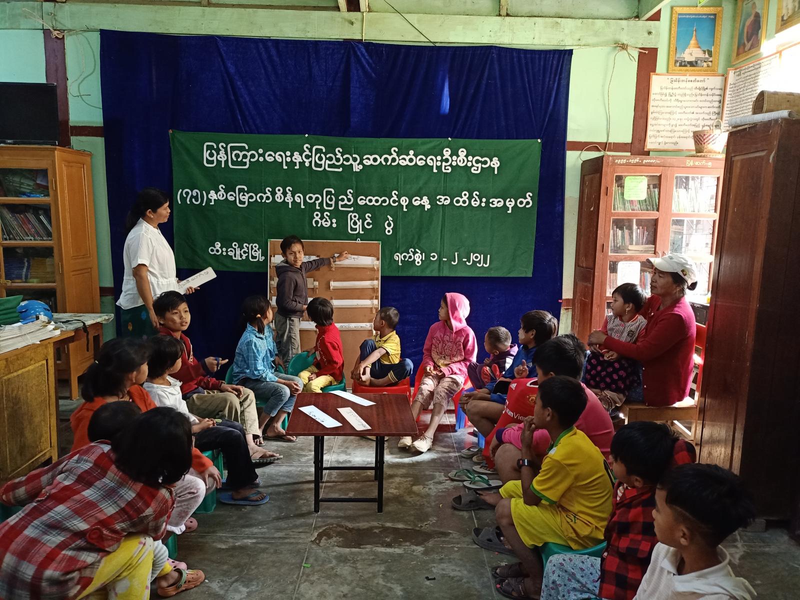 အဆိုပါဂိမ်းပြိုင်ပွဲတွင် ပြန်ကြားရေးနှင့်ပြည်သူ့ဆက်ဆံရေးဦးစီးဌာနမှ မြို့နယ်ဦးစီးမှူး ဒေါ်လဲ့လဲ့ခိုင်က ပြိုင်ပွဲကျင်းပရခြင်း၏ ရည်ရွယ်ချက်ကို ရှင်းလင်းပြောကြားပြီး ကျောင်းသား ကျောင်းသူကလေးများက စကားပုံ ဆက်ကစားခြင်း၊ ပူဖောင်းဖောက်ကစားခြင်း၊ ခုံလု ကစားခြင်းများကို ယှဉ်ပြိုင်ခဲ့ကြပြီး ဆုရရှိသူများအား ဆုများ ချီးမြှင့်ခဲ့သည်။