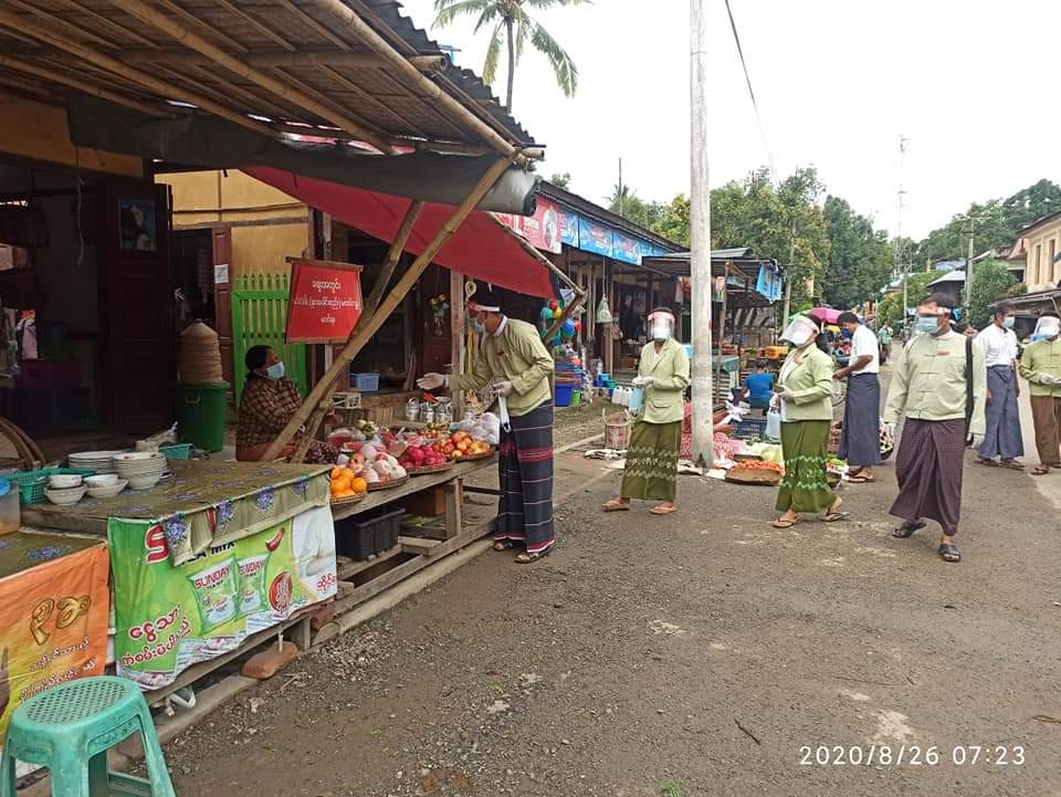 မကွေးတိုင်းဒေသကြီး၊ မင်းဘူးခရိုင် ငဖဲမြို့နယ်၌ ကူးစက်မြန် ကိုဗစ်-၁၉ ရောဂါ ကူးစက်ပျံ့နှံ့မှု မရှိစေရေး၊ ကာကွယ်ထိန်းချုပ်နိုင်ရေးနှင့် ပြည်သူများနှာခေါင်းစည်း စနစ်တကျ တပ်ဆင်ရန်အတွက် ယနေ့နံနက် ၇ နာရီက ငဖဲမြို့မစျေးတွင် စျေးရောင်း စျေးဝယ် ပြည်သူများအား နှာခေါင်းစည်း(Mask) များကို အခမဲ့ဝေငှပေးခဲ့သည်။