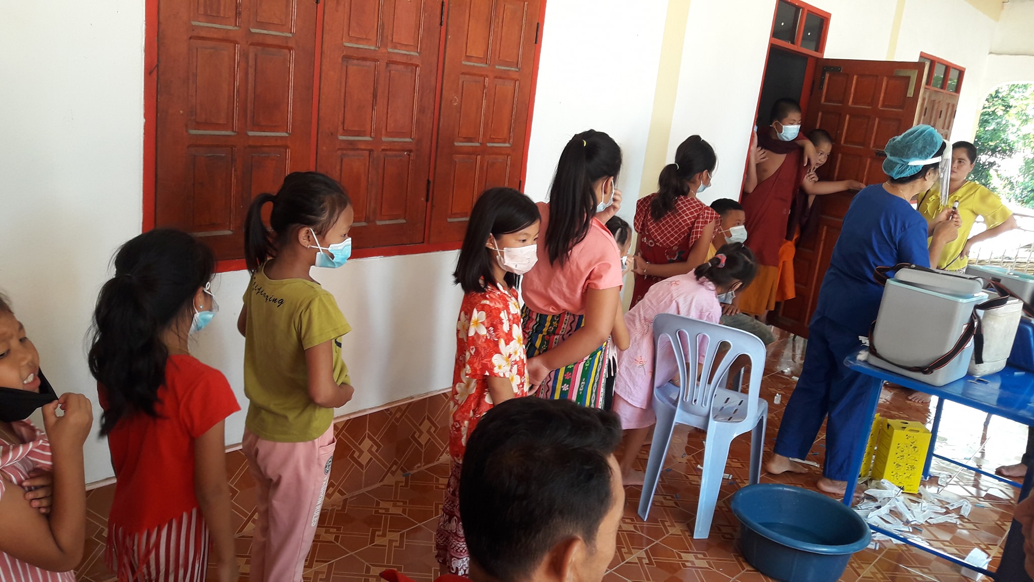 အဆိုပါကာကွယ်ဆေးထိုးနှံခြင်းကို သားဖွားဆရာမ ဒေါ်နန်းအိမ်နှင့် ဝန်ထမ်းများက ဆုံဆို့နာရောဂါအကြောင်း ရှောင်ရန်/ ဆောင်ရန် ကျန်းမာရေးအသိပညာပေး ဟောပြောခြင်း၊ mask များ စနစ်တကျတပ်ဆင်ရေး အသိပညာပေး ဆွေးနွေးခြင်းနှင့် ကလေးငယ် (၂၅၀)ဦးအား ဆုံဆို့နာ ရောဂါ ကာကွယ်ဆေးများထိုးနှံခဲ့ကြောင်း သိရသည်။