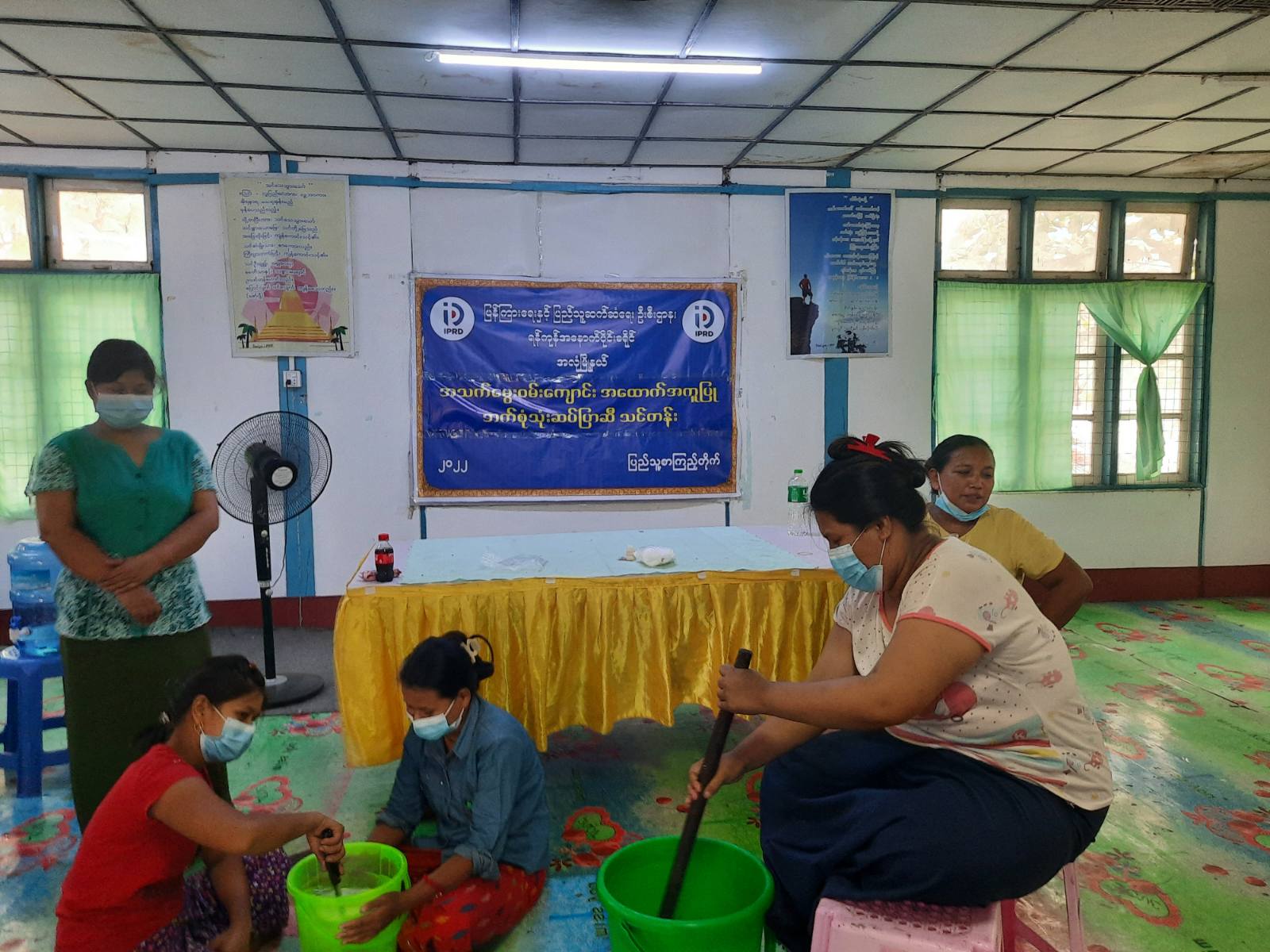 အဆိုပါ သင်တန်းတွင် သင်တန်းနည်းပြ အလုံမြို့နယ် ပြန်ကြားရေးနှင့်ပြည်သူ့ဆက်ဆံရေးဦးစီးဌာန၊ ဒုတိယဦးစီးမှူး ဒေါ်ခိုင်ဇာလင်းမှ ဆပ်ပြာဆီပြုလုပ်ရာတွင် ပါဝင်သောပစ္စည်း တစ်ခုချင်း၏အမည်နှင့် အသုံးပြုပုံများအား စာတွေ့ရှင်းလင်းပြောကြားခြင်းနှင့် ဆပ်ပြာဆီ အဆင့်ဆင့်ပြုလုပ်ပုံအား လက်တွေ့ သင်ကြားခြင်း တို့ကိုဆောင်ရွက်ခဲ့သည်။