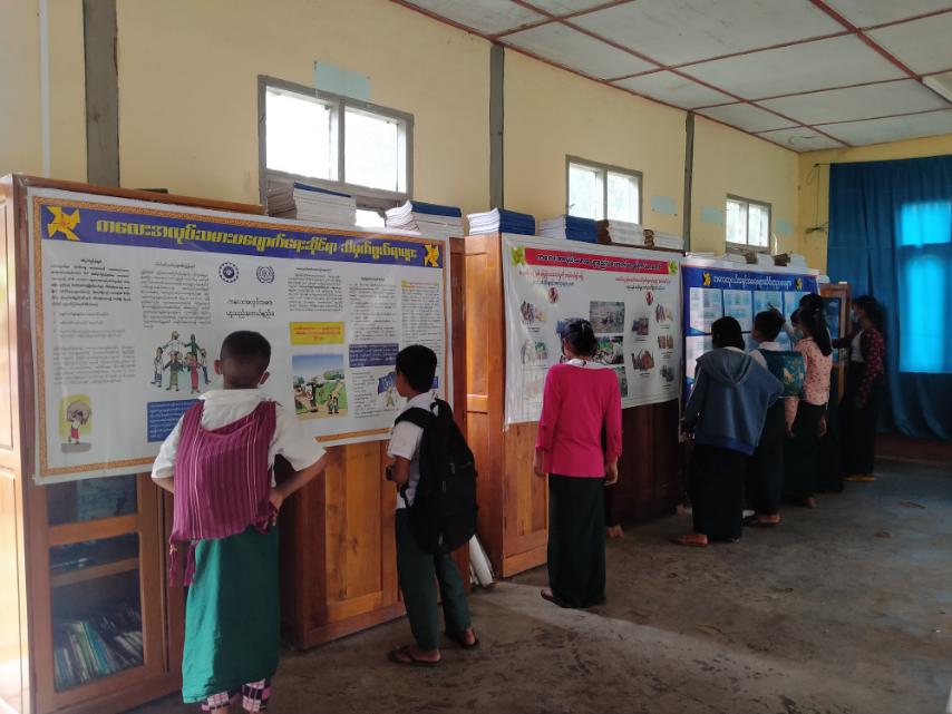 ကရင်ပြည်နယ်၊ ဘားအံခရိုင်၊ ပိုင်ကျုံမြို့ ပြန်ကြားရေးနှင့်ပြည်သူ့ဆက်ဆံရေးဦးစီးဌာန၊ ရုံးတွင်း နံရံကပ်ပြဘုတ်တွင် ယနေ့နံနက်ပိုင်း (၈)နာရီမှစတင်၍ ကလေးအလုပ်သမားပပျောက်ရေး အသိပညာပေး နံရံကပ်စာစောင်များအား ပြသဆောင်ရွက်ရာ ကျောင်းသား/ သူများနှင့် အများပြည်သူများ လာရောက်လေ့လာ ကြည့်ရှုကြကြောင်း သိရသည်။