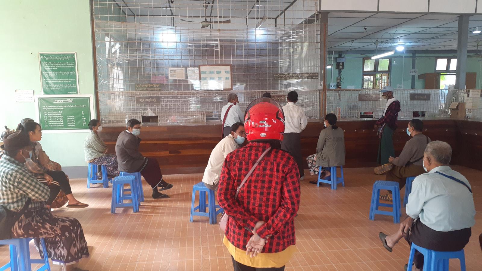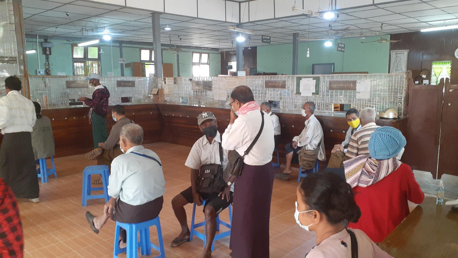 ကရင်ပြည်နယ်၊ ဘားအံခရိုင်၊ လှိုင်းဘွဲမြို့နယ် မြန်မာ့စီးပွားရေးဘဏ်တွင် ပင်စင်စားအငြိမ်းစား ဝန်ထမ်းများအား ပင်စင်လစားများကို ယနေ့နံနက်ပိုင်းက ကိုဗစ်-၁၉ ရောဂါ ကာကွယ်ရေး လမ်းညွှန်ချက်နှင့်အညီ ထုတ်ပေးလျက်ရှိကြောင်း သိရသည်။