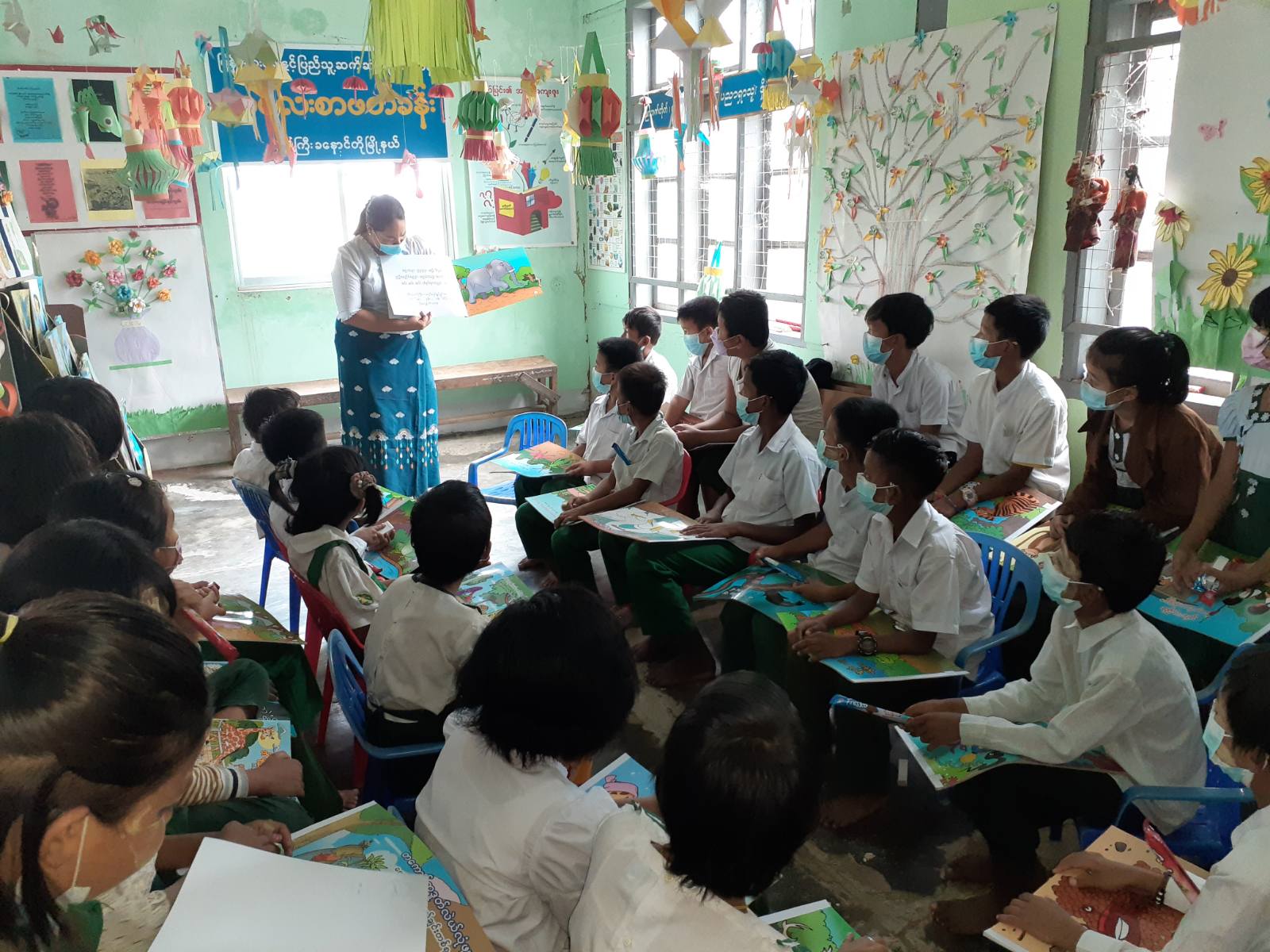 ယင်းနောက် မြို့နယ်ပြည်သူ့စာကြည့်တိုက်ရှိ ကလေးစာဖတ်ခန်းတွင် စာကြည့်တိုက်မှူးက ကျောင်းသား၊ ကျောင်းသူကလေးငယ်များအား ရုပ်ပုံကြည့် ပုံပြောပြခြင်းနှင့် ရုပ်/သံကျွမ်းကျင်(၃) ဝန်ထမ်းက စက္ကူအရုပ်ခေါက်နည်းသင်ကြား ပြသပေးခဲ့ကြောင်း သိရသည်။