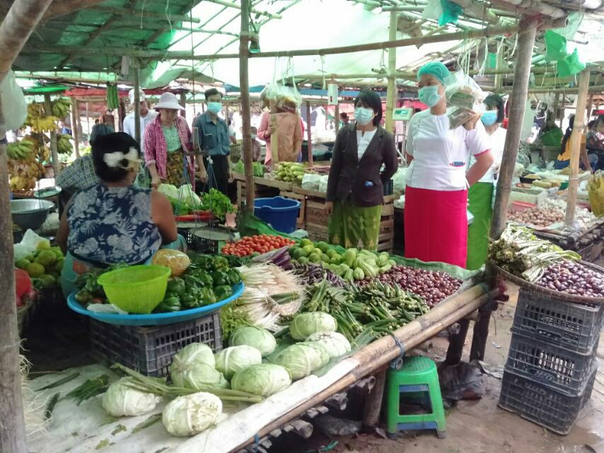 ပဲခူးတိုင်းဒေသကြီး ၊ ပဲခူးခရိုင် ၊ ကဝမြို့နယ် စည်ပင်သာယာရေး အဖွဲ့မှဦးဆောင်၍ စည်ပင်သာယာရေး ဈေးအတွင်း ကိုဗစ်-၁၉ ရောဂါ ကြိုတင်ကာကွယ်ရေး သတ်မှတ် စည်းကမ်းချက်များနှင့်အညီ ဖွင့်လှစ်ရောင်းချရန်နှင့် ဈေးလာရောက် ဝယ်ယူသူများအား နှာခေါင်းစည်း Mask တပ်ဆင်သွားလာရန် စစ်ဆေးခြင်းများကို ယမန်နေ့ နံနက်ပိုင်းက ဆောင်ရွက်ခဲ့ကြောင်း သိရသည်။