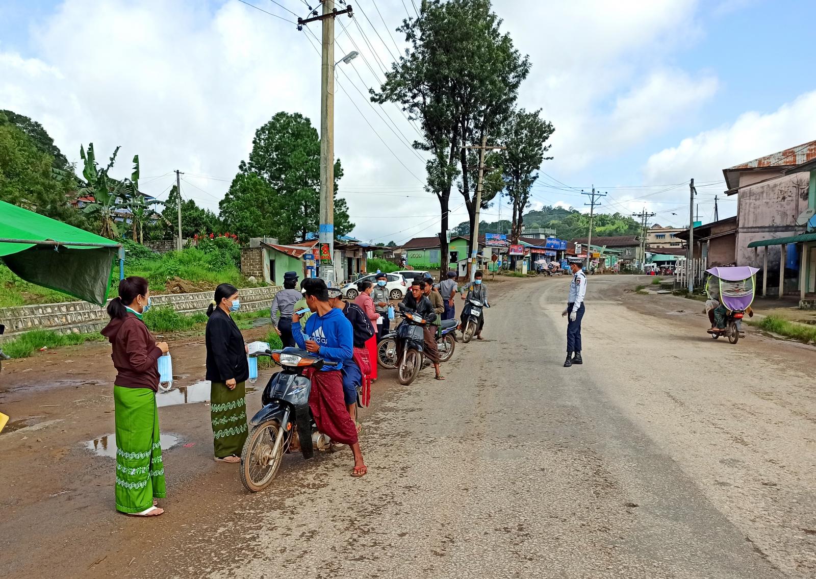 Mask များ ဖြန့်ဝေရာတွင် မြို့နယ်အထွေထွေအုပ်ချုပ်ရေးဦးစီးဌာနမှဝန်ထမ်းများ၊ ဌာနဆိုင်ရာများ၊ ကျန်းမာရေး ဦးစီးဌာနဝန်ထမ်းများ၊ မြို့နယ်ရဲတပ်ဖွဲ့၊ မြို့နယ်ယာဉ်ထိန်းရဲတပ်ဖွဲ့၊ မြို့နယ်မီးသတ် တပ်ဖွဲ့ဝင် များ၊ မြို့နယ်ကြက်ခြေနီအဖွဲ့(ခွဲ)တို့ ပူးပေါင်း၍ လမ်းသွား လမ်းလာ၊ လူထူထပ်သည့်နေရာများတွင် Mask ယူဆောင်အသုံးပြု တပ်ဆင်ခြင်းအလေ့အထ ရှိစေရေး၊ လမ်းသွား၊ လမ်းလာပြည်သူများမှ Mask တပ်ဆင်ခြင်းမရှိသူများအား Mask များဝယ်ယူ တပ်ဆင်စေခြင်းဖြင့် ပညာပေးလုပ်ငန်းများဆောင်ရွက်ပြီး၊ အလားတူ အဆိုပါ Mask များဖြန့်ဝေရာခြင်းနှင့်ပညာပေးလုပ်ငန်းများကို သက်ဆိုင်ရာ ကျေးရွာအုပ်စုများတွင်လည်း ကျေးရွာအုပ်စု အုပ်ချုပ်ရေးများနှင့်ကျေးရွာတာဝန်ရှိသူများက ပြုလုပ်ဆောင်ရွက်လျက်ရှိ ကြောင်း သိရသည်။