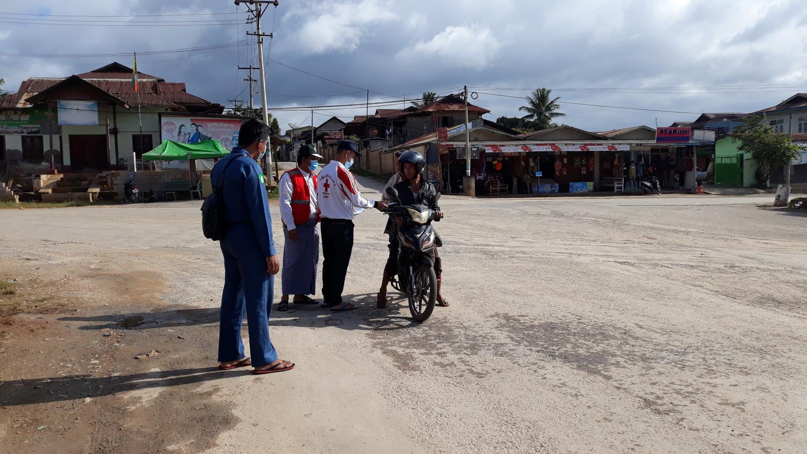 ထိုသို့ဆောင်ရွက်ရာတွင် မြို့နယ် ကိုဗစ်-၁၉ ရောဂါ ကာကွယ်ထိန်းချုပ်ရေးနှင့် အရေးပေါ်တုံ့ပြန်ရေးကော်မတီ ဥက္ကဋ္ဌ မြို့နယ်အုပ်ချုပ်ရေးမှူး ဦးနန်းတင့်၊ ဒုတိယမြို့နယ် အုပ်ချုပ်ရေးမှူး ဦးဆန်းထွန်းနှင့် ဝန်ထမ်းများ၊ မြို့နယ် ပြည်သူ့ကျန်းမာရေးဌာနမှူး ဒေါက်တာမောင်မောင်သိန်း၊ မြို့နယ်စည်ပင်သာယာရေးဌာန အမှုဆောင်အရာရှိ ဦးမောင်မောင်မြင့်၊ မြို့နယ်မီးသတ်ဦးစီးဌာနတို့မှ ဝန်ထမ်းများ၊ ကျန်းမာရေးဝန်ထမ်းများ၊ မြို့နယ်အမျိုးသမီးရေးရာနှင့် မိခင်နှင့်ကလေးစောင့်ရှောက်ရေးအသင်း ဥက္ကဋ္ဌ ဒေါ်ဇာဇာဝင့်နှင့်အဖွဲ့ဝင်များ၊ ကြက်ခြေနီနှင့် စေတနာ့ဝန်ထမ်းများသည် စျေးဝယ်လာသော ပြည်သူများနှင့် ခရီးသွားပြည်သူများအား အပြင်ထွက်သည့်အခါတိုင်း နှာခေါင်းစည်း Maskများ တပ်ဆင်ကြရန်၊ လူစုလူဝေးနေရာများကို မလိုအပ်ဘဲ သွားလာခြင်းမပြုရန် စသည်ဖြင့် အသိပညာပေးပြောကြားခြင်းနှင့် နှာခေါင်းစည်း Mask (၆၅၀)ခု အခမဲ့ဖြန့်ဝေခြင်းကို ဆောင်ရွက်ခဲ့ကြောင်းသိရသည်။