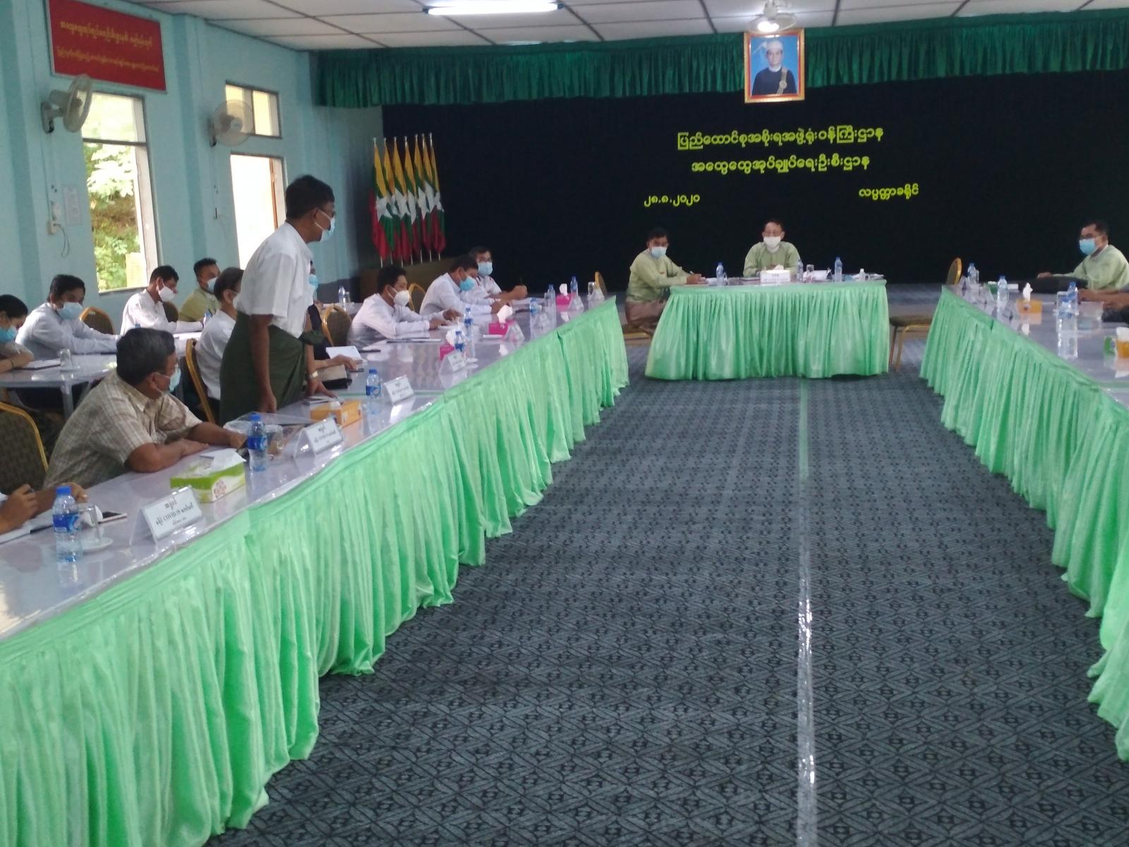 ဧရာဝတီတိုင်းဒေသကြီး၊ လပွတ္တာခရိုင်၊ လပွတ္တာမြို့နယ် ကိုဗစ်-၁၉ ထိန်းချုပ်ရေးနှင့် အရေးပေါ်တုံ့ပြန်ရေး ကော်မတီမှ မြို့နယ်အတွင်း လက်ရှိဆောင်ရွက်လျက်ရှိသည့် ကိုဗစ်-၁၉ရောဂါ ကြိုတင်ကာကွယ် ထိန်းချုပ်ကုသရေးနှင့် အသိပညာ ပေးနှိုးဆော်ခြင်းလုပ်ငန်း အသီးသီးအား မြို့နယ်အတွင်း ကူးစက်ပြန့်ပွားမှု မရှိစေရေးအတွက် ယခင်ဆောင်ရွက်လျက်သည့် လုပ်ငန်းများထက် တိုးမြှင့်ဆောင်ရွက်နိုင်ရေး ဆွေးနွေးပွဲကို ယနေ့ နံနက်(၁၀)နာရီက လပွတ္တာခရိုင်အထွေထွေအုပ်ချုပ်ရေးဦးစီးဌာန အစည်းအဝေးခန်းမ၌ ကျင်းပြုလုပ်သည်။