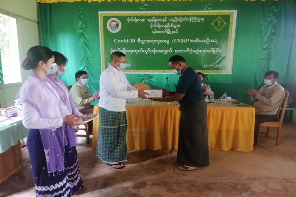 ရှမ်းပြည်နယ်တောင်ပိုင်း၊ တောင်ကြီးခရိုင်၊ ရပ်စောက်မြို့တွင် ကိုဗစ်-၁၉ စီးပွားရေး ကုစားမှု CERP အစီအစဉ်အရ မြို့နယ်စိုက်ပျိုးရေးဦးစီးဌာနမှ မိုးစပါးမျိုးစေ့ထုတ် လုပ်ငန်းအတွက် ထောက်ပံ့ငွေပေးအပ်ခြင်းအခမ်းအနားကို ယမန်နေ့က စိုက်ပျိုးရေး ဦးစီးဌာနတွင် ကျင်းပသည်။