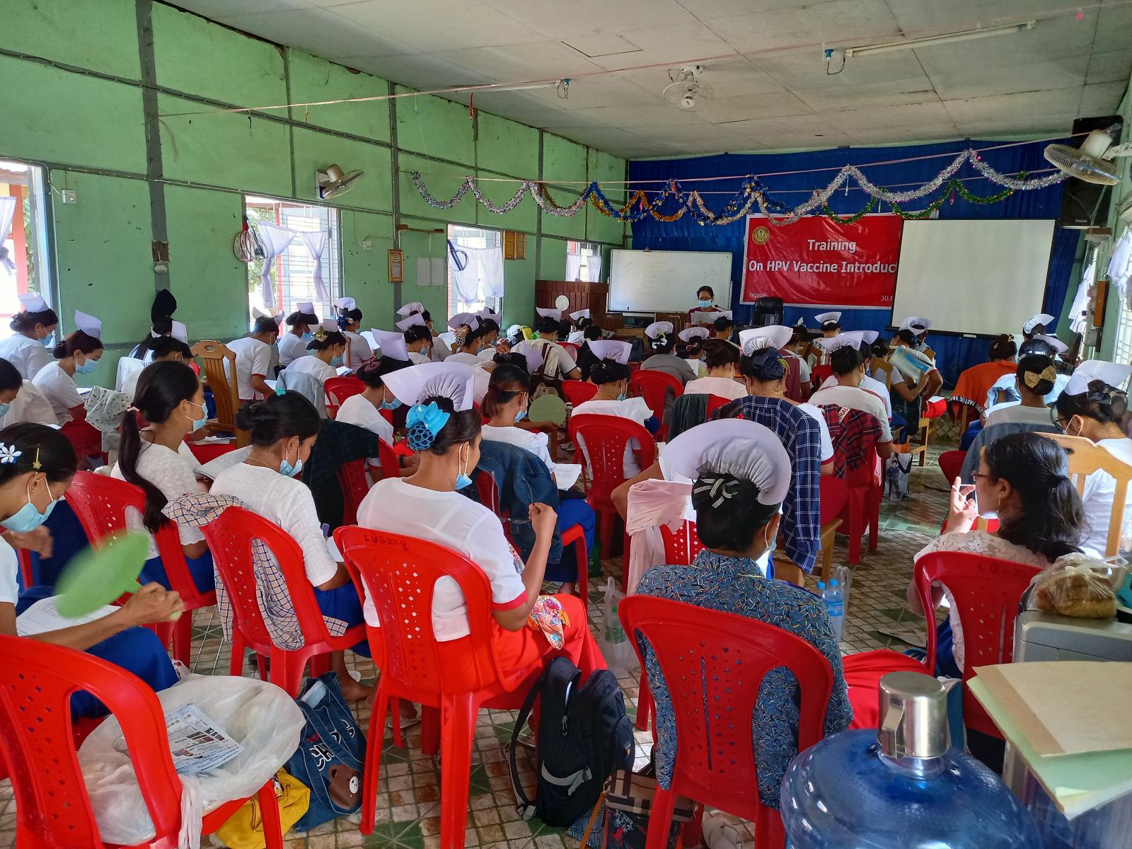 သင်တန်းတွင် ငဖဲမြို့နယ်ပြည်သူ့ကျန်းမာရေးဦးစီးဌာနမှူးဒေါက်တာထင်ကျော်က သားအိမ်ခေါင်း ကင်ဆာ ရောဂါဆိုင်ရာ သိကောင်း စရာများ၊ အိတ်ပီဗီ(Human Papillomavirus) ပိုးနှင့် ပိုးကြောင့်ဖြစ်သော သားအိမ်ခေါင်းကင်ဆာကာကွယ်ဆေးကို ဘေးအန္တရာယ် ကင်းစွာထိုးနှံပေးခြင်း၊ မှတ်တမ်းပြုစုခြင်း ၊ သတင်းပေးပို့ခြင်းနှင့် မြို့နယ်ကျန်းမာရေးမှူးဒေါ်မူမူ က ပုံမှန်ကာကွယ် ဆေးထိုး/ ဆေးတိုက် အစီအစဉ်တွင် HPV ကာကွယ်ဆေးထည့်သွင်းထိုးနှံရန်လုပ်ငန်းအဆင့်ဆင့်များကို ဆွေးနွေးပို့ချခဲ့ကြသည်။