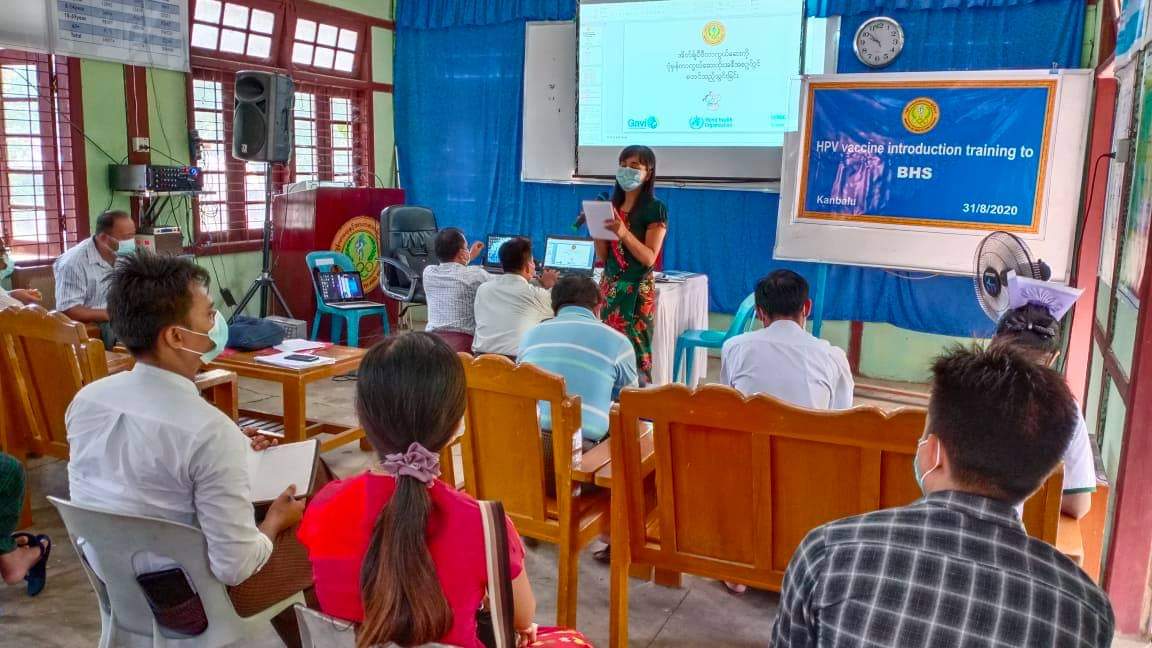 စစ်ကိုင်းတိုင်းဒေသကြီး ကန့်ဘလူ မြို့နယ်အတွင်းရှိ အသက် ကိုးနှစ်မှ ဆယ်နှစ်အထိ အမျိုးသမီးများအား သားအိမ်ခေါင်းကင်ဆာ ရောဂါကြို တင်ကာကွယ်နိုင်ရေးအတွက် ပုံမှန် ကာကွယ်ဆေးထိုးနှံခြင်းအစီအစဥ်အရ သားအိမ်ခေါင်းကင်ဆာ ကာကွယ်ဆေး Human Papillioma Virus(HPV) ဆေးထည့်သွင်းထိုးနှံခြင်း သင်တန်းကို ယနေ့ နံနက် ၉ နာရီက မြို့နယ်ပြည်သူ့ကျန်းမာရေးဦးစီးဌာန အစည်းအဝေးခန်းမ၌ ကျင်းပရာ မြို့နယ်ပြည်သူ့ ကျန်းမာရေးဦးစီးဌာန ခုတင် ၁၀၀ ဆေးရုံအုပ်ဒေါက် တာနေမိုးနှင့်ဆရာ ဆရာမများ၊ ကျေးလက်ကျန်းမာရေး ဝန်ထမ်းသင်တန်းသားများ၊ သင်တန်းနည်းပြ ကျန်းမာရေးမှူး အဆင့်(၁) ဒေါ်ရီရီဝင်း နှင့် ပြည်သူ့ကျန်းမာရေး ကြီးကြပ်(၁) ဦးတင်အောင်ထွန်း တို့က တက်ရောက် သင်ကြားပို့ချခဲ့ကြောင်း သိရသည်။