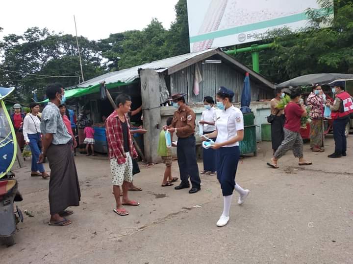 ရှမ်းပြည်နယ်(မြောက်ပိုင်း)၊ ကျောက်မဲခရိုင်၊ သီပေါမြို့နယ်တွင် ကိုဗစ်−၁၉ ရောဂါ ကူးစက် ပြန့်ပွားမှု မဖြစ်ပေါ် စေရန်နှင့် ကြိုတင်ကာကွယ်ရေးအတွက် အသိပညာပေးနှိုးဆော်ခြင်း လုပ်ငန်းများကို ကြက်ခြေနီ အသင်းခွဲမှ စဉ်ဆက်မပြတ် ဆောင်ရွက်လျက်ရှိရာ ယနေ့ နံနက် ၇ နာရီ အချိန်က သီပေါမြို့နယ် အတွင်းရှိ မြို့မစျေး၊ ဝက်ဝံပျံကျစျေး(ယာယီစျေး) နှင့် ရပ်ကွက်များတွင် ပြုလုပ်ဆောင်ရွက်ခဲ့သည်။