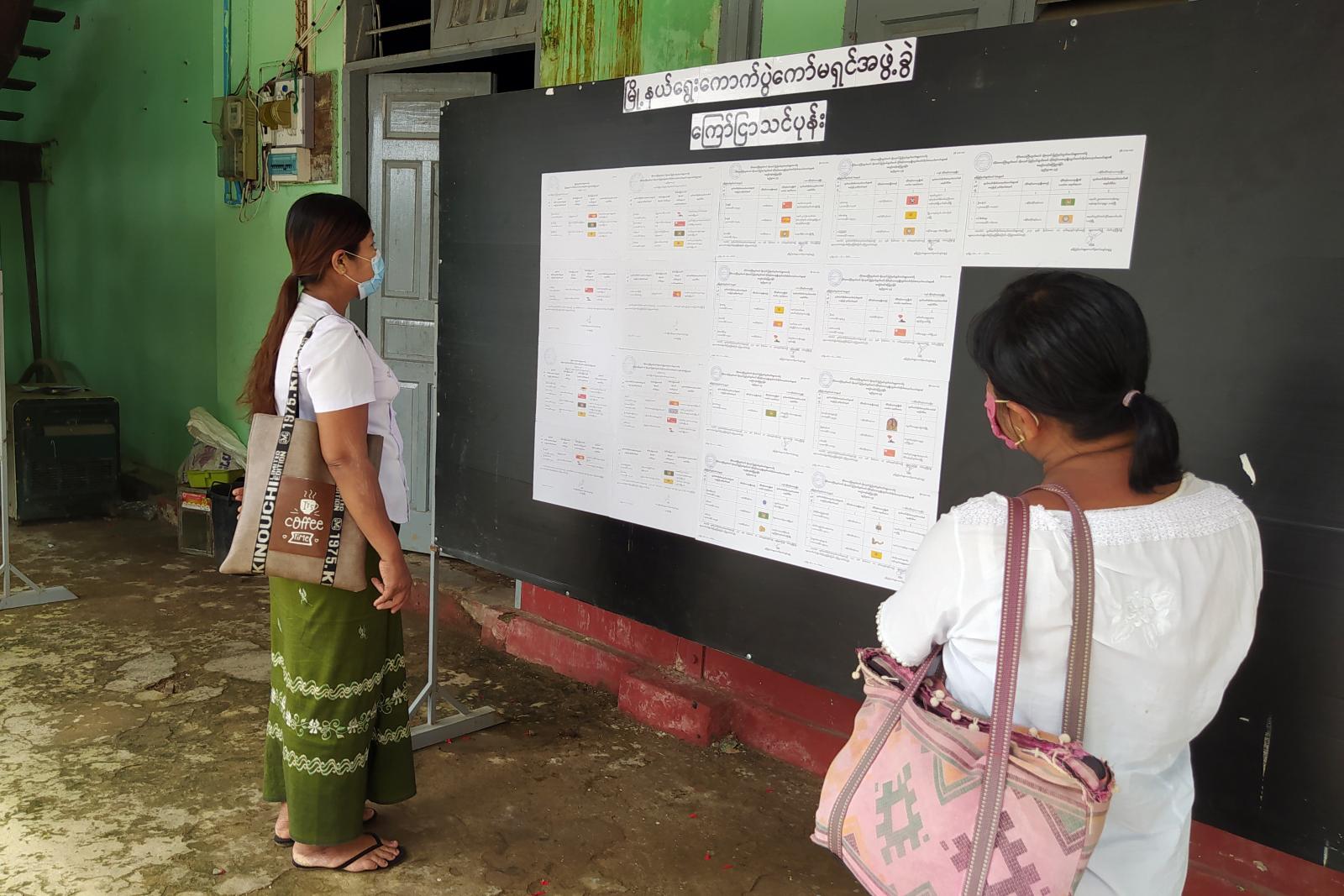 အဆိုပါ ကိုယ်စားလှယ်လောင်းအမည်စာရင်း ကြေညာချက်ကို မြို့နယ်အတွင်းရှိ ရပ်ကွက် /ကျေးရွာ ရွေးကောက်ပွဲကော်မရှင်အဖွဲ့ခွဲရုံး (၄၆)အုပ်စု၌လည်း ဩဂုတ်(၃၁)ရက်နေ့တွင် ဆက်လက်ကပ်ထား ကြေညာထားကြောင်း မြို့နယ်ကော်မရှင်အဖွဲ့ခွဲရုံးမှ သိရသည်။