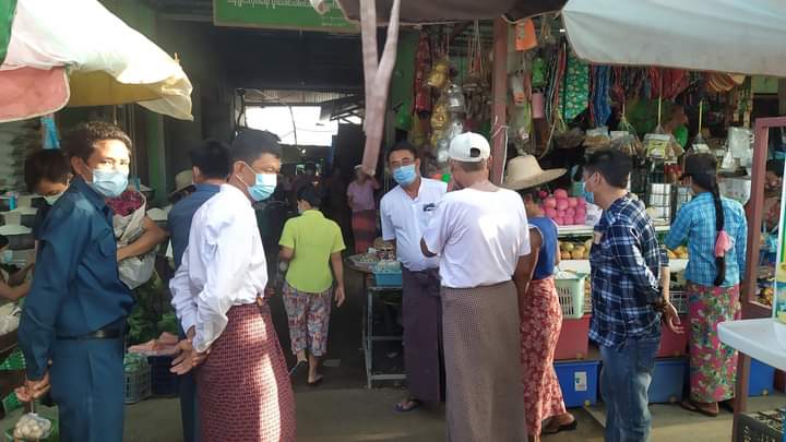 ထိုသို့ဆောင်ရွက်ရာတွင် မြို့နယ်စည်ပင်သာယာရေးအမှုဆောင်အရာရှိ ဦးတိုးအောင်လွင် ဦးဆောင်ပြီး မြို့နယ်စည်ပင်ကော်မတီ ဥက္ကဋ္ဌ နှင့် စျေးအကျိုးဆောင် စျေးခေါင်းတို့ ပူးပေါင်း ဆောင်ရွက်၍ စျေးအတွင်းရှိ ပြည်သူများအားနှာခေါင်းစည်း Mask တပ်ဆင်မှု ရှိ၊ မရှိ စစ်ဆေး ပြီး Mask တပ်ဆင်မှုမရှိသူများကို Mask တစ်ခုလျှင် ဒဏ်ငွေ(၁၀၀၀)ကျပ်ဖြင့် ချက်ချင်း ဝယ်ယူတပ်ဆင်စေပြီး ပြည်သူ များအနေဖြင့် မိမိနေအိမ်မှ ပြည်ပသို့ထွက်ခွာလာပါက Mask