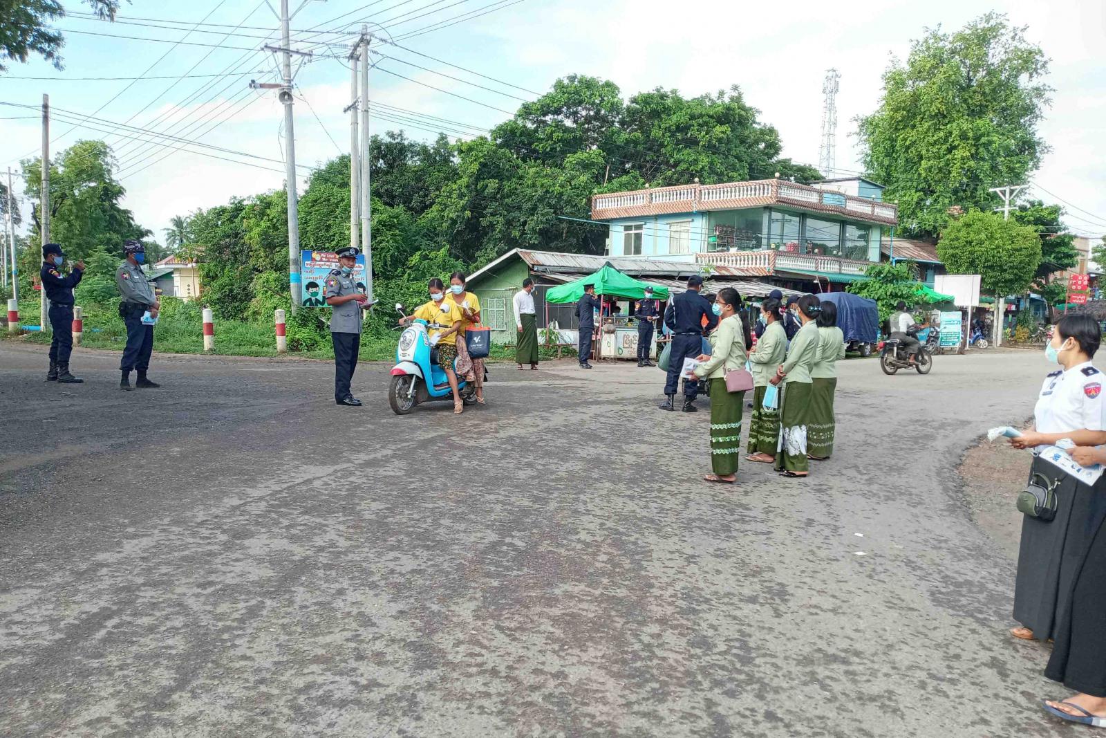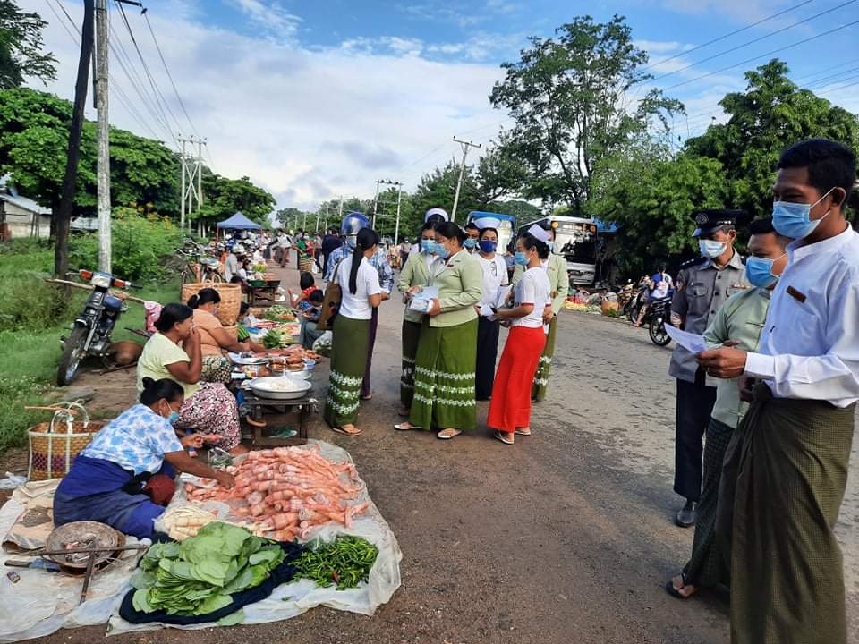 စစ်ကိုင်းတိုင်းဒေသကြီး၊ ယင်းမာပင်ခရိုင်၊ ပုလဲမြို့၊ မုံရွာ-ပုလဲ-ဂန့်ဂေါကားလမ်းဆုံနှင့်ယာယီဈေး၌ ယမန်နေ့ နံနက် ၇ နာရီခွဲအချိန်တွင် COVID-19 ရောဂါ ကူးစက်မှု မရှိစေရေးနှင့် ကြိုတင်ကာကွယ်နိုင်ရေးအတွက် အသိပညာပေး လက်ကမ်းစာစောင်များ ဖြန့်ဝေခြင်း၊နှာခေါင်းစည်း(Mask)၂၅၀၀ အခမဲ့ ဖြန့်ဝေခြင်း လုပ်ငန်းကို မြို့နယ် COVID-19 ထိန်းချုပ်ရေးနှင့် အရေးပေါ်တုံ့ပြန်ရေးကော်မတီဥက္ကဋ္ဌမြို့နယ်အုပ်ချုပ်ရေးမှူး ဦးသန်းနိုင်နှင့်ဝန်ထမ်းများ၊ မြို့နယ်ရဲတပ်ဖွဲ့မှူးရဲမှူး တင်ဌေးနှင့်ရဲတပ်ဖွဲ့ဝင်များ၊ မြို့နယ်ပြည်သူ့ ကျန်းမာရေး ဦးစီးဌာနမှူး ဆရာဝန်ကြီး ဒေါက်တာထွန်းမင်းခန့်နှင့် ဝန်ထမ်းများ၊ မြို့နယ် စည်ပင် သာယာရေးကော်မတီ အတွင်းရေးမှူးဒေါ်မော်တူးနှင့် ဝန်ထမ်းများ၊ မြို့နယ်အဆင့် ဌာနဆိုင်ရာ တာဝန်ရှိသူများ၊ မြို့နယ်မီးသတ်ဦးစီး ဌာနမှမီးသတ်တပ်ဖွဲ့ဝင်များ၊ မြို့မိမြို့ဖများနှင့် စေတနာ့ဝန်ထမ်းများက ဆောင်ရွက်ပေးခဲ့ကြောင်း သိရသည်။