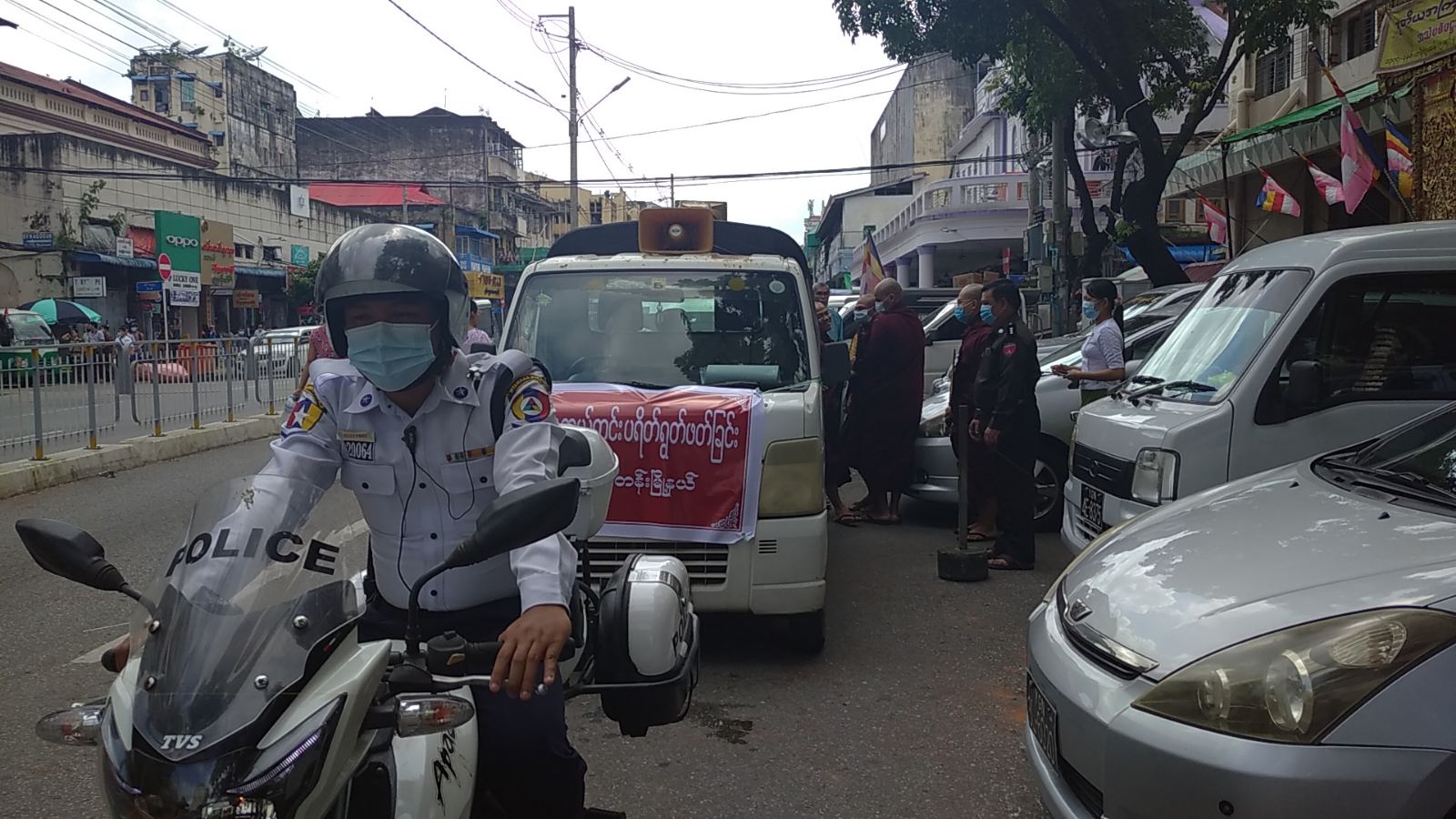 အဆိုပါ ပရိတ်တရားတော်များရွတ်ဖတ်ပူဇော်ရာတွင် မြို့နယ် ကိုဗစ်-၁၉ ရောဂါ ထိန်းချုပ်ရေးနှင့် အရေးပေါ်တုံ့ပြန်ရေး ကော်မတီဥက္ကဋ္ဌ မြို့နယ်အုပ်ချုပ်ရေးမှူး ဦးကျော်ခိုင်နှင့် အဖွဲ့ဝင်များ၊ ရပ်ကွက်အုပ်ချုပ်ရေးမှူးများ၊ ယာဉ်ထိန်းတပ်ဖွဲ့ ဆိုင်ကယ် လှည့်ကင်းအဖွဲ့မှ ကုသိုလ်ပြု ဆောင်ရွက်ခဲ့ကြောင်း သိရှိရသည်။