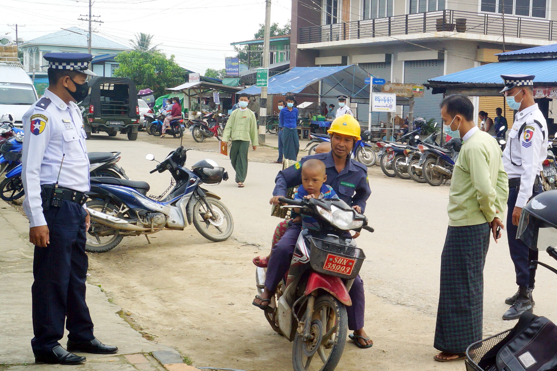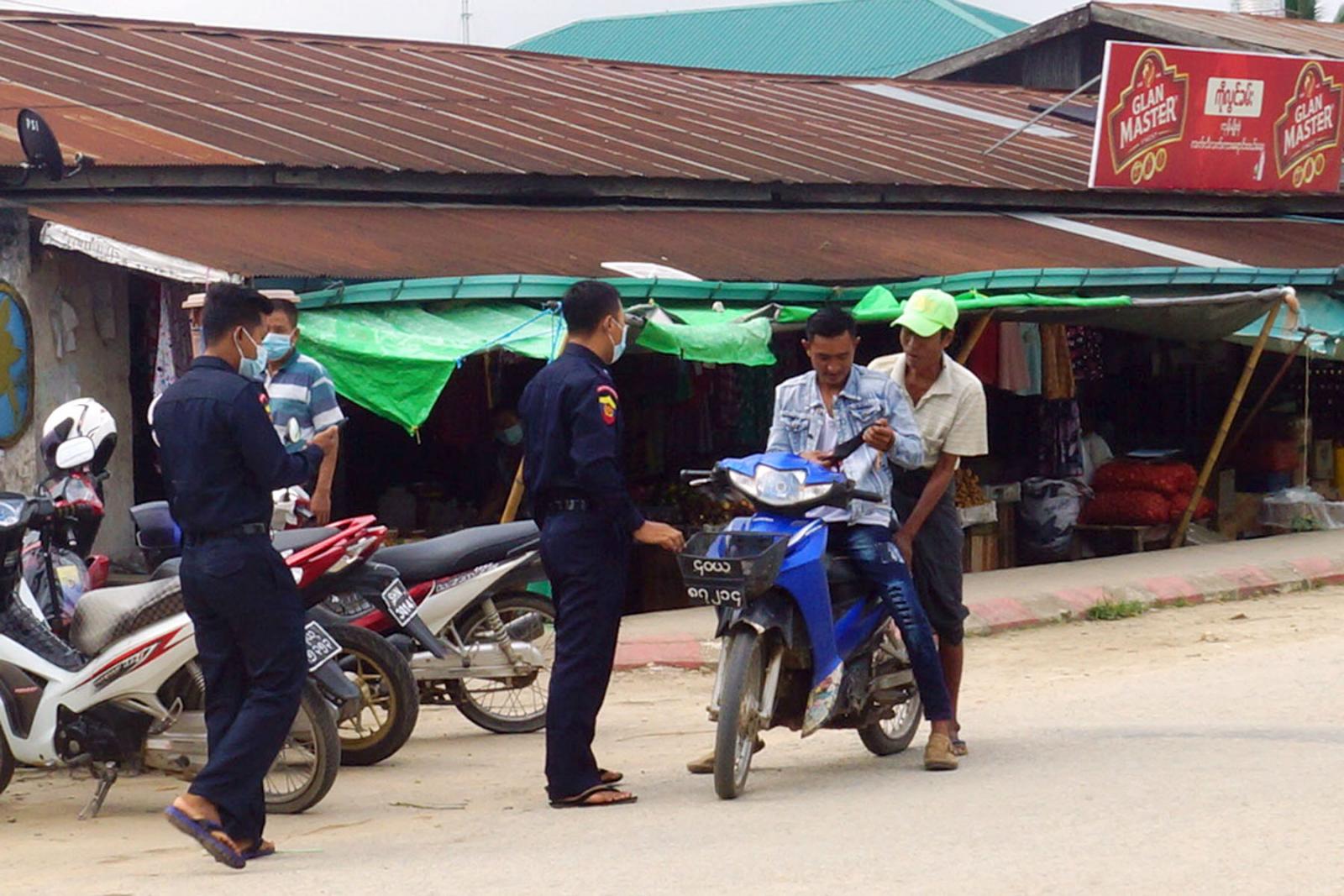 ကိုဗစ်-၁၉ ရောဂါကြိုတင်ကာကွယ်ထိန်းချုပ်နိုင်ရေးအတွက် မြို့တွင်းလှုပ်ရှားသွားလာသူများအား Mask တပ်ဆင်သွားလာရေး မြို့မဈေးရှေ့နှင့် မိုင်းတုံလမ်းဆုံတို့တွင် နေ့စဉ်အသိပညာပေးဆောင်ရွက်လျက် ရှိရာ ယနေ့ နံနက်ပိုင်းက Mask တပ်ဆင်သွားလာခြင်း မရှိသူ(၁၀)ဦးအား ဒဏ်ပေးသည့်အနေဖြင့် Mask (၁၀)ခုဝယ်ယူစေပြီး (၅)ခုအား မြို့နယ်COVID-19 ရောဂါကာကွယ်ထိန်းချုပ်ရေးနှင့် အရေးပေါ် တုံ့ပြန်ရေး ကော်မတီထံ လှူဒါန်း၍ ကျန်(၅)ခု အနက် တစ်ခုကိုတစ်ပါတည်း တပ်ဆင်စေပြီးမှသာ လိုရာခရီးသို့ ဆက်သွားခွင့်ပြုခဲ့သည်။