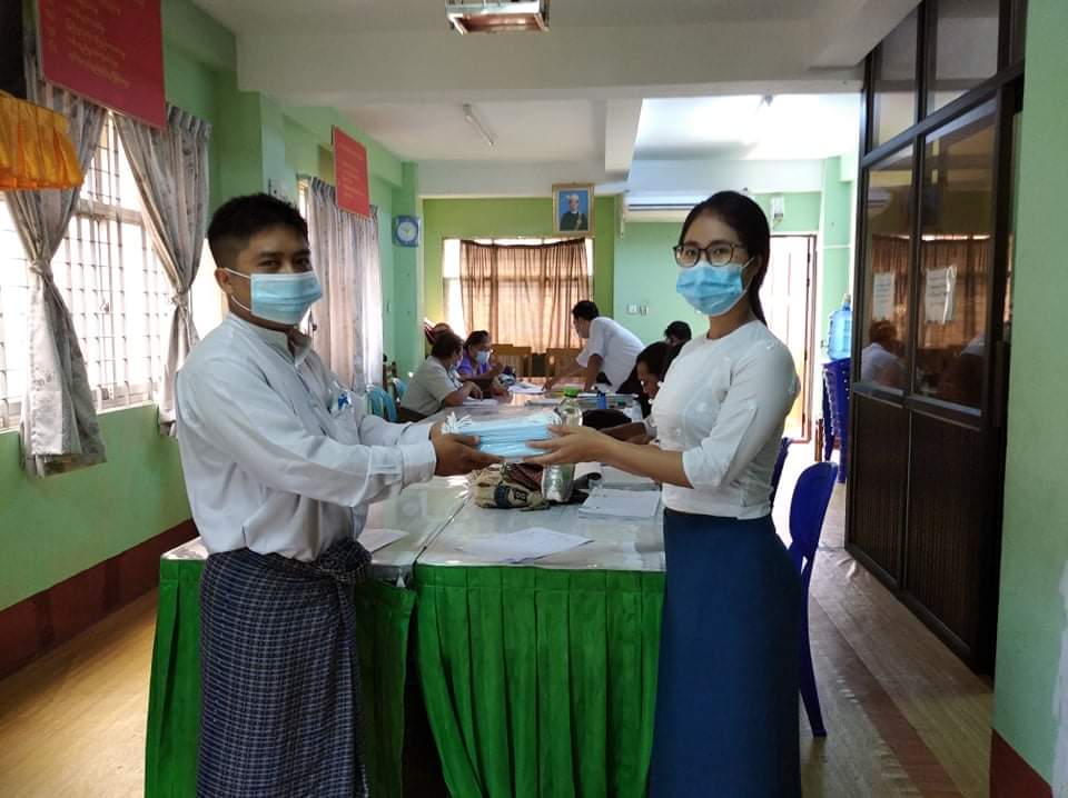 ရန်ကုန်အနောက်ပိုင်းခရိုင်၊ အလုံမြို့နယ် ကိုဗစ်-၁၉ ရောဂါကာကွယ်ထိန်းချုပ်ရေးနှင့် အရေးပေါ် တုန့်ပြန်ရေးကော်မတီမှ မြို့နယ်တွင်း တာဝန်ထမ်းဆောင်နေသောနိုင်ငံ့ဝန်ထမ်းများအား ပါးစပ်နှာခေါင်းစည်း (mask) များနှင့် လက်သန့် ဆေးရည်(Hand Gel)များကို ယနေ့ နံနက်ပိုင်းမှ စတင်၍ လှူဒါန်းခဲ့ကြောင်း သိရသည်။