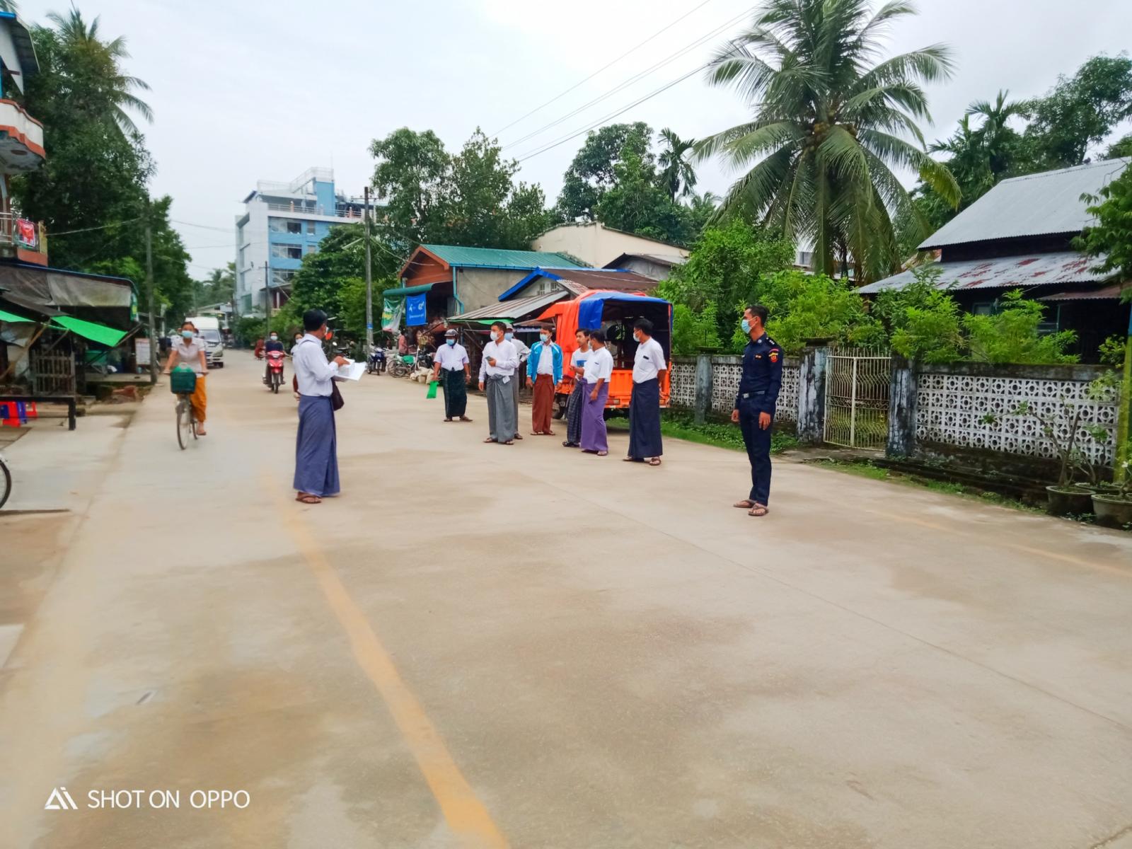 "ကျွန်တော်တို့ ကိုဗစ်-၁၉ အရေးပေါ်တုံပြန်ရေး ကော်မတီအနေနဲ့ သြဂုတ်လ ၃၀ ရက်နေ့ကစတင်ပြီး မြို့ထိပ်မှာတစ်ဖွဲ့၊ အထွေထွေအုပ်ချုပ်ရေး ဦးစီးဌာနရုံးရှေ့မှာ တစ်ဖွဲ့နဲ့ မြို့မဈေးကြီးရှေ့မှာတစ်ဖွဲ့ စုစုပေါင်း(၃)ဖွဲ့နဲ့ နှာခေါင်းစည်း တပ်ဆင်ခြင်း ရှိ/မရှိစစ်ဆေးပါတယ်။ နှာခေါင်းစည်းကို အပြင်ထွက်လို့ စနစ်တကျမတပ်ရင် စစ်ဆေးရေးအဖွဲ့က နှာခေါင်းစည်း(၃)ခုပေးပြီး ဒဏ်ငွေ၃၀၀၀ပေးဆောင် စေပါတယ်။ တော်တော်များများကလည်း နှာခေါင်းစည်းကို စနစ်တကျ တပ်ဆင်လာတာ တွေ့ရပါတယ်။ ကျွန်တော်တို့စစ်ဆေးရေး အဖွဲ့(၃)ဖွဲ့ထဲကမှ အထွေထွေအုပ်ချုပ်ရေး ဦးစီးဌာနရုံးရှေ့မှာ စစ်ဆေးတဲ့အဖွဲ့နဲ့ ကိုဗစ်-၁၉ အရေးပေါ်တုန့်ပြန့်ရေးအဖွဲ့မှ တာဝန်ရှိသူတွေနဲ့ ပူးပေါင်းပြီး မိုဘိုင်း စနစ်နဲ့ လိုက်လံစစ်ဆေး နေတာပါ''လို့ အထွေထွေအုပ်ချုပ်ရေးဦးစီးဌာန မြို့နယ်အုပ်ချုပ်ရေးမှူး ဦးလှမင်းသူက ပြောသည်။