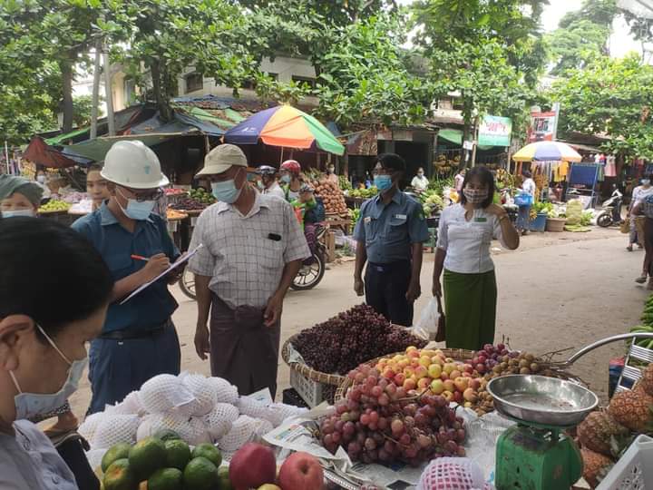 ဈေးရောင်းဈေးဝယ်ပြည်သူများအနေဖြင့် သတ်မှတ်အကွာအဝေးနေရာများတွင် ရောင်းချဝယ်ယူနိုင်ရေး အသားငါးများ၊ စားသောက်ကုန်ပစ္စည်းများရောင်းချသူများ၊ ဝယ်ယူသူများအနေဖြင့် နှာခေါင်းစည်းများ တပ်ဆင်အသုံး ပြုပြီးမှ ဈေးအတွင်းသို့ဝင်ရောက်ရန်၊ စွန့်ပစ်အမှိုက်များကိုလည်း သတ်မှတ်နေရာများတွင် စနစ်တကျစွန့်ပစ်ရေးနှင့် မြို့နယ်စည်ပင်သာယာရေးကော်မတီက ချမှတ်ထားသည့် စည်းကမ်းများကိုလည်း တိကျစွာလိုက်နာ ဆောင်ရွက်ရေးတို့ကို ကြိုတင်နှိုးဆော်ထားပါကြောင်း မြို့နယ်စည်ပင်သာယာရေးအဖွဲ့ အမှုဆောင်အရာရှိ ဦးကျော်နိုင်၏ ပြောကြားချက်အရ သိရသည်။