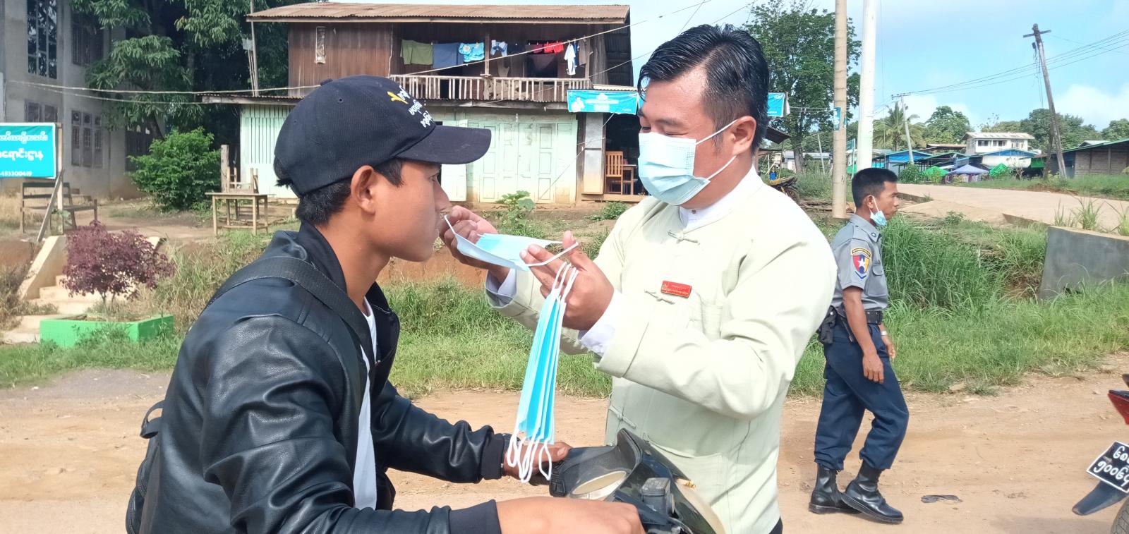 ရှမ်းပြည်နယ်တောင်ပိုင်း၊ တောင်ကြီးခရိုင်၊ အင်တောမြို့၌ ကိုဗစ်-၁၉ ရောဂါ ကြိုတင် ကာကွယ်မှုများ ပြုလုပ်နိုင်ရန်နှင့် ထိန်းချုပ်နိုင်အတွက် မြို့မစျေးနှင့် ရပ်စောက်-အင်တော-နောင်ချို ပြည်ထောင်စု ကားလမ်းမကြီးတစ်လျှောက်တွင် နှာခေါင်းစည်းများ အခမဲ့ဖြန့်ဝေခြင်းနှင့် အသိပညာပေးခြင်းကို ယနေ့ နံနက် ၈ နာရီက ဆောင်ရွက်ခဲ့ကြကြောင်း သိရသည်။