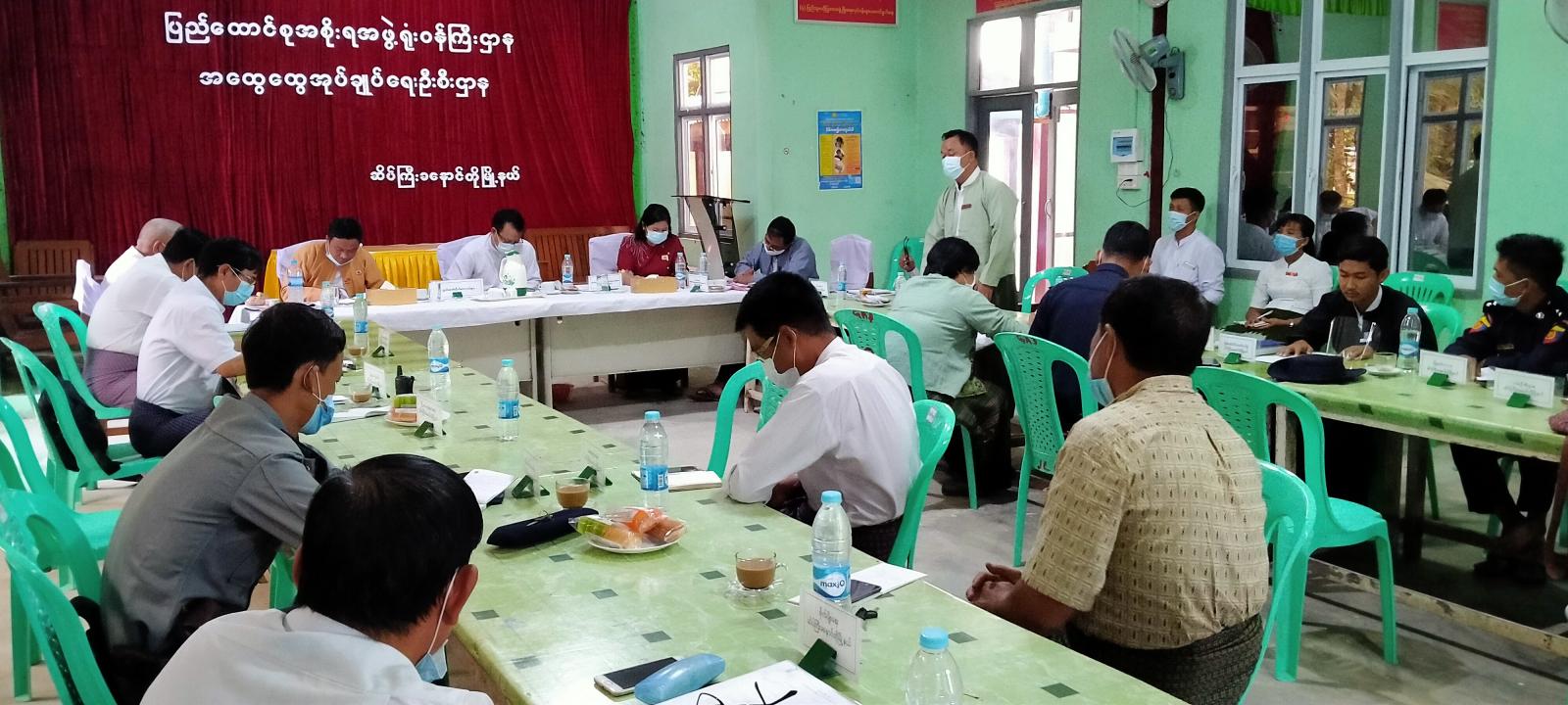 ထို့နောက် မြို့နယ်စီမံကိန်းရေးဆွဲ အကောင်အထည်ဖော်ရေး ကော်မတီ အတွင်းရေးမှူး မြို့နယ် စီမံကိန်း ဦးစီးမှူးက ဘတ်ဂျက်ခွင့်ပြုငွေအရ ဆောင်ရွက်မည့် လုပ်ငန်းများနှင့် စပ်လျဉ်း၍ ရှင်းလင်းပြောကြားပြီး တက်ရောက်လာသည့် ဌာနဆိုင်ရာ တာဝန်ရှိသူများနှင့် ရပ်ကွက်အုပ်ချုပ်ရေးမှူးများက ၂၀၁၉-၂၀၂၀ ဘဏ္ဍာနှစ်၊ ဌာနဆိုင်ရာနှင့် ရပ်ကွက် များအလိုက် ဘတ်ဂျက်ခွဲဝေခွင့်ပြုမှုအရ ကဏ္ဍအလိုက် ဒေသဖွံ့ဖြိုးရေးလုပ်ငန်းများ လျာထား၊ ဆောင်ရွက်ဆဲနှင့် ဆက်လက် အကောင်အထည်ဖော် ဆောင်ရွက်မည့် လုပ်ငန်းများ၊ မြို့နယ် အတွင်း COVID-19 ရောဂါ ကာကွယ်၊ ထိန်းချုပ် ရေး လုပ်ငန်းများဆောင်ရွက်နေမှု အခြေအနေ များ၊ အသက် (၁၈) နှစ်ပြည့်သူတိုင်း ဆန္ဒမဲပေးနိုင်ရေး မြို့နယ် ရပ်ကွက် များအတွင်း နိုင်ငံသား စိစစ်ရေး ကတ်ပြားများ ကွင်းဆင်း ဆောင်ရွက်ပေးနေမှုအခြေအနေများ၊ မြို့နယ်အတွင်း လျှပ်စစ် အန္တရာယ် ကင်းရှင်းရေးနှင့် ဓာတ်အားပြည့်ဝစွာရရှိရေး လုပ်ငန်းဆောင်ရွက်နေမှုအခြေအနေများ၊ ဌာနဆိုင်ရာ ရုံး အဆောက်အဦးသစ်များ ဆောက်လုပ်ပြီးစီးမှုအခြေအနေများနှင့်ဒေသဖွံ့ဖြိုးရေး အခြားလုပ်ငန်းများ ဆောင်ရွက်နေမှု တို့အား အလှည့်ကျ ရှင်းလင်းတင်ပြရာ လွှတ်တော် ကိုယ်စားလှယ်များနှင့် မြို့နယ်စီမံကိန်းရေးဆွဲ အကောင်အထည် ဖော်ရေး ကော်မတီ အတွင်းရေးမှူး တို့က ပေါင်းစပ်ညှိနှိုင်း ဆွေးနွေးဆောင်ရွက်ပေးခဲ့ကြောင်း သိရသည်။