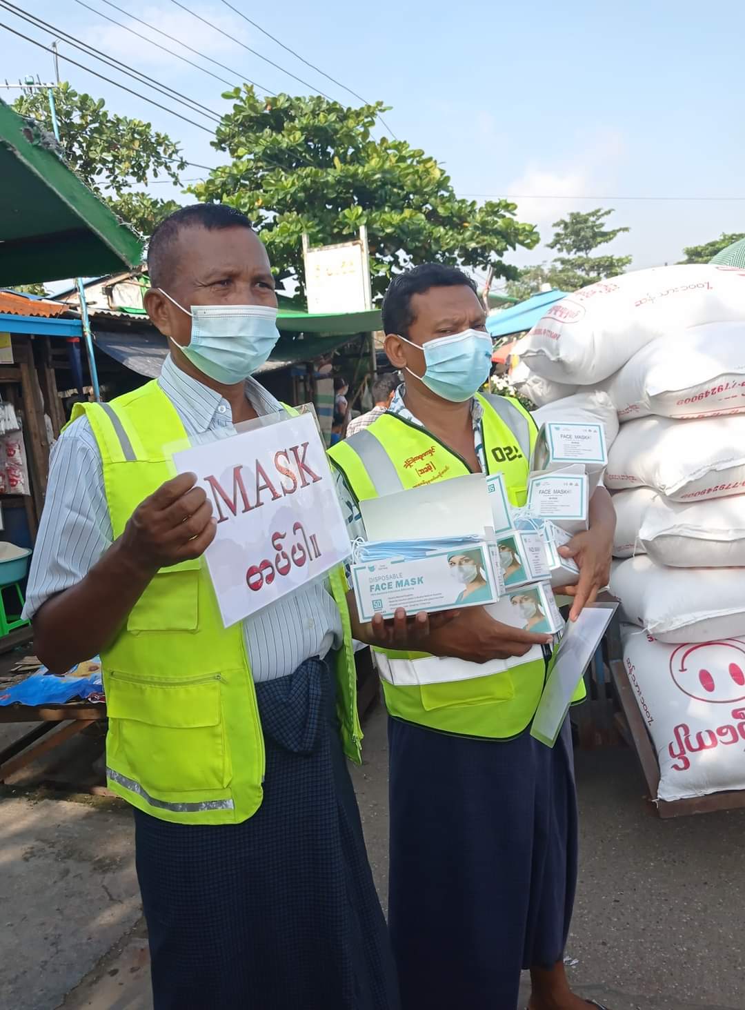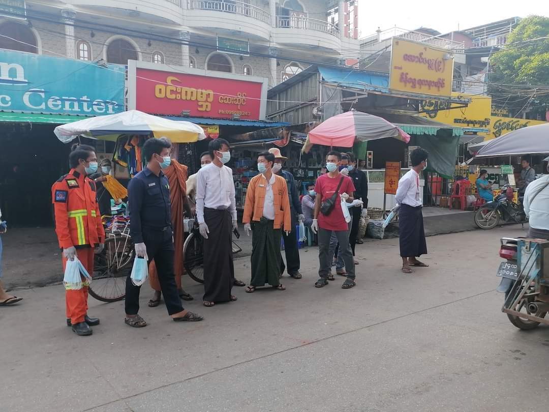 ရန်ကုန်တိုင်းဒေသကြီး၊ မြောက်ပိုင်းခရိုင်၊ လှိုင်သာယာမြို့နယ်၌ ကိုဗစ်−၁၉ ရောဂါ ကာကွယ်ထိန်းချုပ် ရေးအတွက် Mask တပ်ဆင် သွားလာရေး အသိပညာပေးဆောင်ရွက်ခြင်းနှင့် Mask များ အခမဲ့ဖြန့်ဝေခြင်းကို ယမန်နေ့ နေ့လယ်က အမျိုးသားလွှတ်တော် ကိုယ်စားလှယ် ဦးအေးဗိုလ်၊ စည်ပင်သာယာရေးကော်မတီဥက္ကဋ္ဌ ဦးစိုးသိန်းအောင်၊ စည်ပင် EO ဦးသိန်းလွင်၊ စည်ပင်သာယာရေး ကော်မတီ အဖွဲ့ဝင်(၂)ဦးဇော်အောင်၊ မြို့နယ် ကြက်ခြေနီ သူနာပြုတပ်ဖွဲဝင်များ၊ ဒေါ်ခင်မာဝင်း ဦးဆောင်သော လူမှုပရဟိတ အဖွဲ့များ၊ ဆရာတော် ဦးကေသရဦးဆောင်သော ပရဟိအဖွဲ့များ၊ ဦးဇေကိုကို ခေါင်းဆောင်သော ပရဟိအဖွဲ့များ ပူးပေါင်း၍ လှိုင်သာယာမြို့နယ်အတွင်းရှိ လူစည်ကားရာ မီးခွက်ဈေးနှင့် ကားမှတ် တိုင်များတွင် ဆောင်ရွက်သည်။