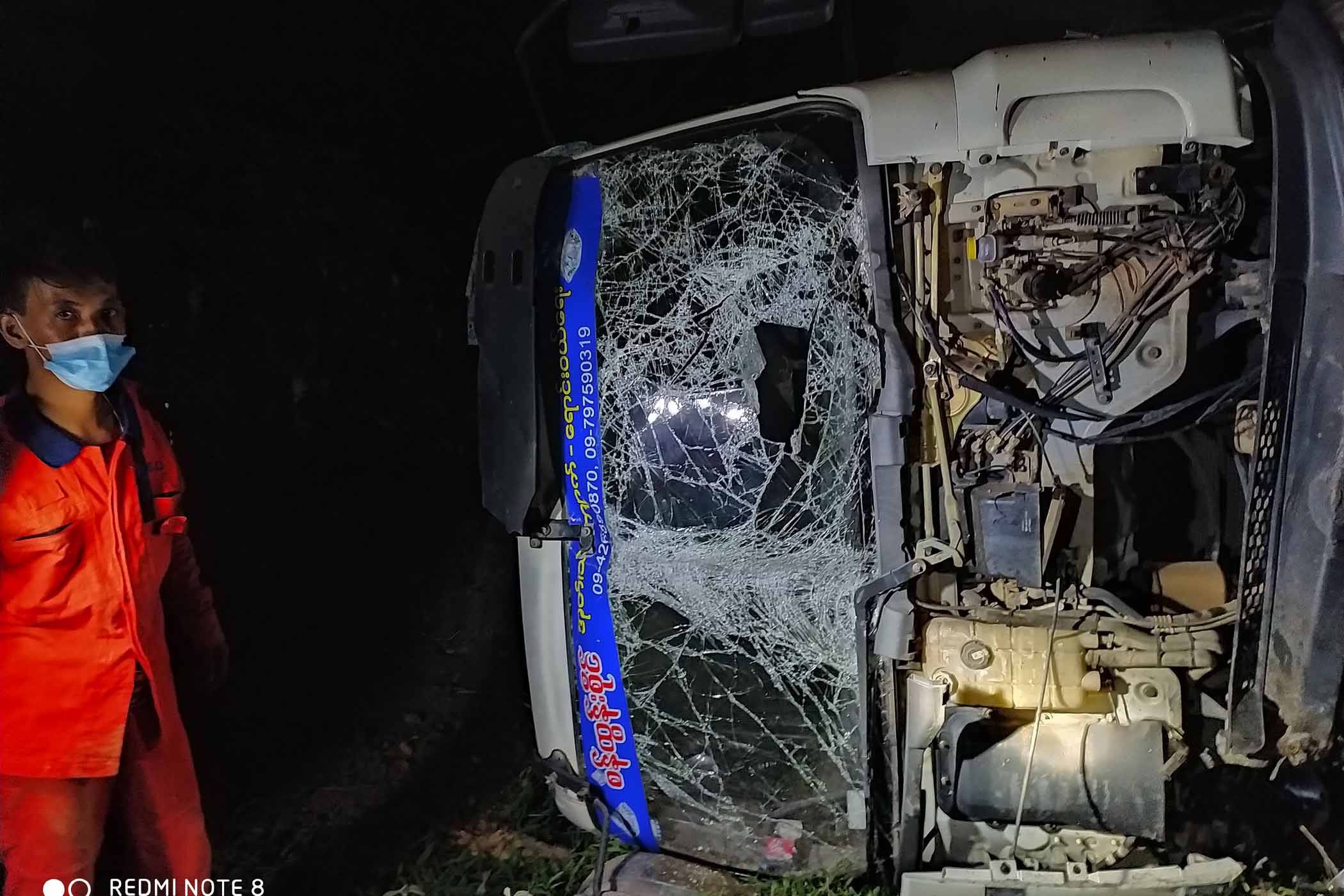 နွားထိုးကြီးမြို့နယ်၊ ဆောက်လုပ်ရေးရုံးအနီး၌ ယာဉ်တိမ်းမှောက်မှုဖြစ်ပွားကြောင်း သတင်းအရ ဒုရဲအုပ် ပြည့်ဖြိုးထွန်းက သက်သေများနှင့်အတူ သွားရောက်ကြည့်ရှုစစ်ဆေးခဲ့ရာ မြင်းခြံ-ရေဝန်းသွားကာလမ်း မိုင်တိုင် (၂၀/၂ နှင့် ၂၀/၃၃) ကြား ဆောက်လုပ်ရေးရုံးအနီး၌ ယမန်နေ့ည ၈ နာရီ အချိန်ခန့်တွင် အရှေ့ဘက်မှအနောက်ဘက်သို့ မောင်းနှင်လာသော MDY 1p/----နံပါတ်ပါ Chenglong အမျိုးအစား အဖြူရောင်ယာဉ်သည် အရှိန် လွန်၍ လမ်း၏ယာဘက်ခြမ်းသို့ ထိုးကျတိမ်းမှောက်သဖြင့် ယာဉ်အားမဆင်မခြင်မောင်းနှင်သူ ယဉ်မောင်း ဦး--- အား နွားထိုးကြီးမြို့၊ မြို့မရဲစခန်းမှ အမှုဖွင့်အရေးယူဆောင်ရွက်လျက်ရှိကြောင်း သိရသည်။