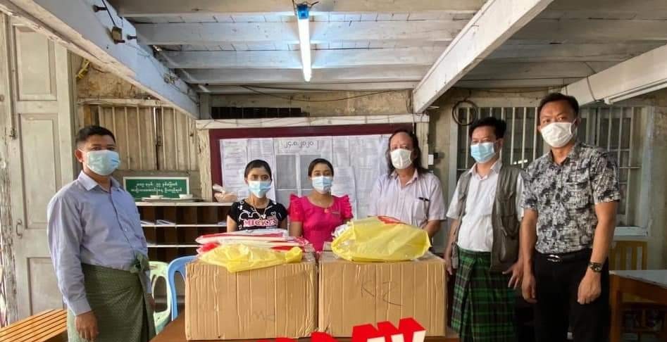 ရန်ကုန်အနောက်ပိုင်းခရိုင်၊ စမ်းချောင်းမြို့နယ် အထွေထွေအုပ်ချုပ်ရေးဦးစီးဌာန ခန်းမတွင် ယမန်နေ့ နေ့လယ် (၁)နာရီခန့်အချိန်က ကိုဗစ်-၁၉ ရောဂါ ကာကွယ်ထိန်းချုပ်ကုသရေးအဖွဲ့သို့ ဗားကရာလမ်းမ ပေါ်ရှိ Spirit မိသားစုမှ Mask များနှင့် PPE ဝတ်စုံများ လာရောက်လှူဒါန်းခဲ့ကြသည်။