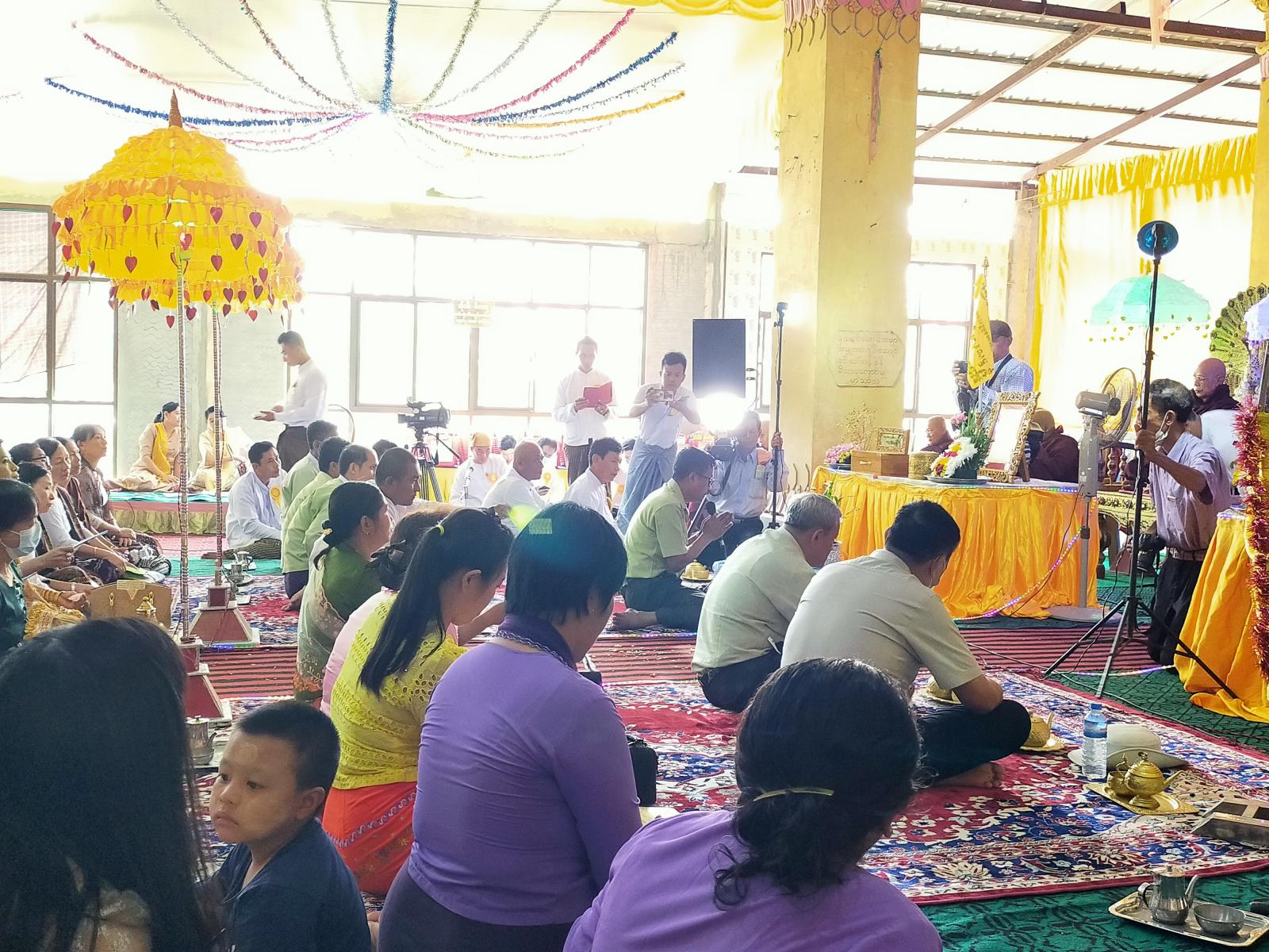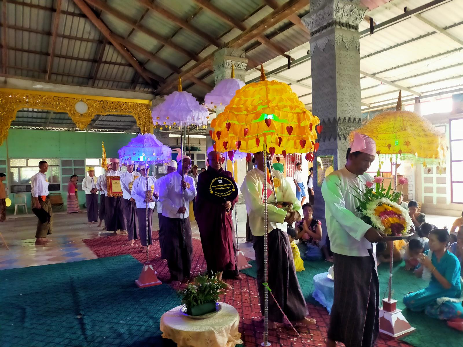 ရှေးဦးစွာ ဟင်္သာတခရိုင် စီမံအုပ်ချုပ်ရေးအဖွဲ့ဥက္ကဋ္ဌ ဦးမြင့်သန်းဝင်းနှင့် တာဝန်ရှိသူများ၊ မြို့နယ် စီမံအုပ်ချုပ်ရေးအဖွဲ့အဖွဲ့ဥက္ကဋ္ဌ ဦးသိန်းတန်နှင့်မြို့နယ်အဆင့်ဌာနဆိုင်ရာများ၊ လူမှုရေး အသင်းအဖွဲ့များနှင့် အလှု့ရှင်တပည့်ဒါယာ၊ ဒါယိကာမများက နမောတသ(၃)ကြိမ် ရွတ်ဆို အခမ်းအနားဖွင့်လှစ်ပြီး၊"ထူးမခြားနား"သီချင်းခန့်ဖြင့် ပူဇော်ပြီးနောက် မြို့နယ် ဩဝါဒစရိယ စပါးအိုးကျောင်းတိုက်ဆရာတော်ထံမှ ငါးပါးသီလဆောက်တည်ခဲ့ကြသည်။