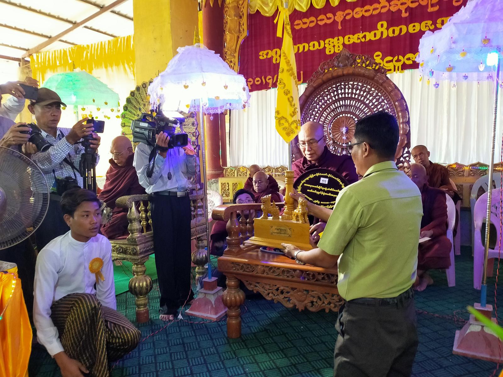 ထိုနောက် နိုင်ငံတော်ဗဟိုသံဃဝန်ဆောင်၊ နိုင်ငံတော်ဝိနည်းဓိုရ်ကွေ့ မတောင်ပုံဆရာတော် ရေးစပ်ပူဇော်သည့်"ဧကပိုဒ်ရတု"ဖြင့် ပူဇော်ပြီး၊ ဘွဲ့တံဆိပ်တော် ရကုန်းမြင့်ဆရာတော် ဘုရားကြီး၏"ထေရုပ္ပတ္တိ"အားကုန်းမြင့် သာယာကျောင်းတိုက်ဆရာတော် ဘဒ္ဒန္တဝေပုလ္လမှ ဖတ်ကြားပူဇော်ပြီး၊ "တုတိဝေဒလ္လ"ဂါထာတော်ဖြင့်လယ်ယာပရိယတ္တိ စာသင်တိုက်ဆရာတော် မှပူဇော်ခြင်း "ပုဒ်ရတုစုံ"၊"ရှစ်ဆယ်ပေါ်ထပ် ကွန့်တေးထပ်"ဖြင့် စောင်းအနုပညာရှင်များက ပူဇော်ကြသည်။