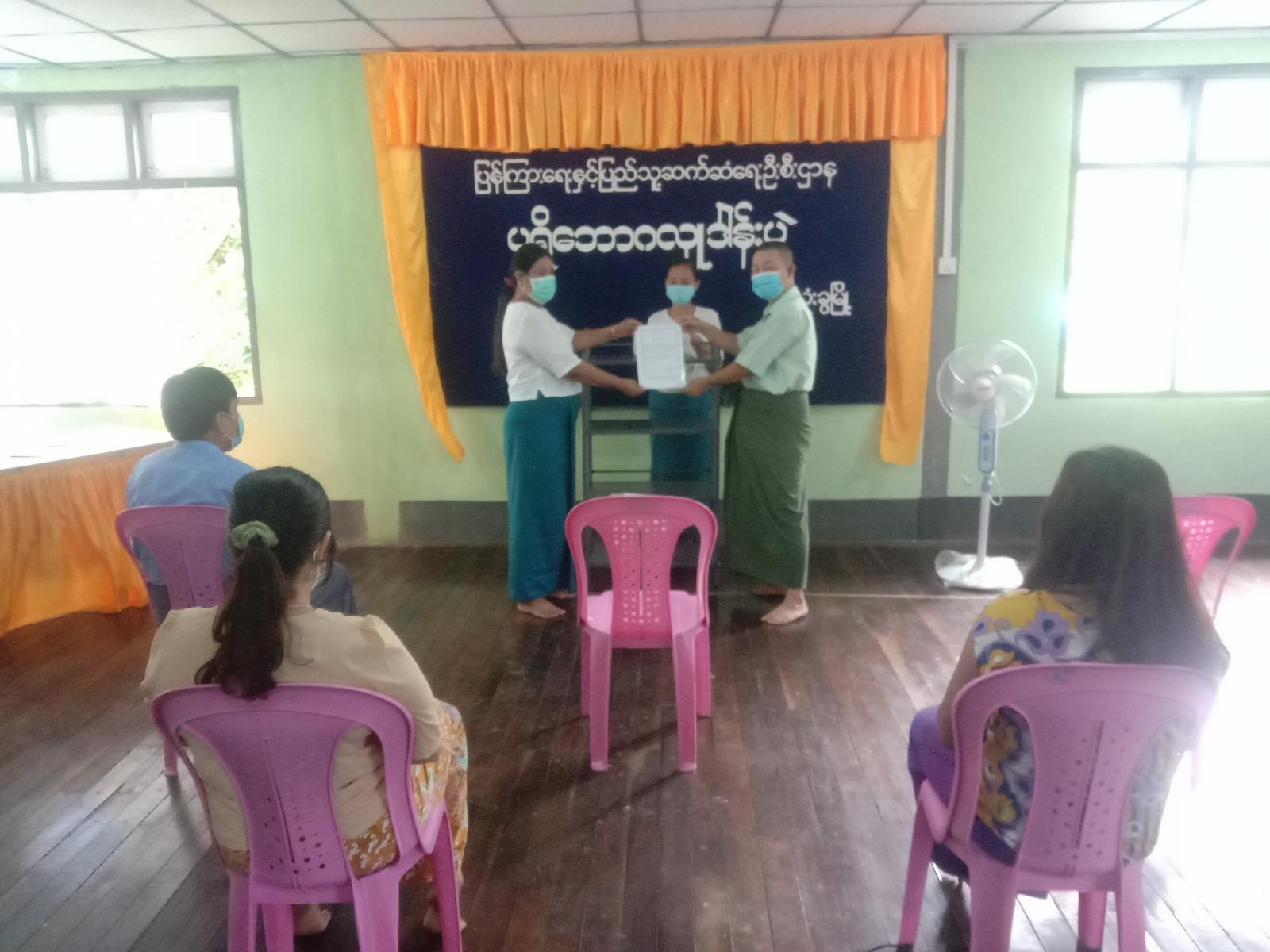 သို့ပါ၍ လူထုအခြေပြု ဗဟိုဌာန Community Centre တွင်အသုံးပြုလျက်ရှိသော စာတွဲစင်များနှင့် သံစင်များကို လိုအပ် သည့် နေရာတွင် အသုံးပြုနိုင်ရန်အတွက် အမှတ် (၄)ရပ်ကွက်နေ ဦးတင်မောင်နိုင်+ ဒေါ်သင်းသင်းအေး (မိသားစု) တို့မှ ငွေကျပ်တစ်သိန်းတန်ဘိုးရှိ သစ်သား စာတွဲစင် တစ်စင်နှင့် အမှတ်(၂)ရပ်ကွက်နေ ဦးကျော်ဆန်း (သတင်းထောက်)မှ ငွေကျပ် သုံးသောင်းရှစ်ထောင် တန်ဖိုးရှိ ဖိုင်တင်စင်(သံစင်)တို့ကို လှူဒါန်းခဲ့ရာ မြို့နယ်ဦးစီးမှူး ဒေါ်တင်တင်ထွေးက လက်ခံ ရယူခဲ့ပြီး ၎င်းအလှူရှင်များအား ဂုဏ်ပြုမှတ်တမ်းလွှာများပြန်လည် ပေးအပ်ခဲ့ပြီး ကျေးဇူးတင်စကား ပြောကြားခဲ့ ကြောင်း သိရသည်။