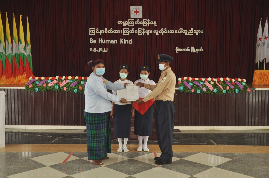 ဆက်လက်၍ မြို့နယ်ကြက်ခြေနီအသင်းခွဲနှင့် ကြက်ခြေနီသူနာပြုတပ်ဖွဲ့တွင် (၁၅)နှစ်ပြည့် လှုပ်ရှား ဆောင်ရွက်ခဲ့သူ(၂၉)ဦးနှင့် (၃၀)နှစ်ပြည့် လှုပ်ရှားဆောင်ရွက်ခဲ့သူ(၂)ဦးတို့အား မြန်မာနိုင်ငံ ကြက်ခြေနီအသင်းရုံးချုပ်မှ ပေးပို့သော ဂုဏ်ပြုမှတ်တမ်းလွှာနှင့် ဂုဏ်ထူးဆောင်တံဆိပ်များကို တာဝန်ရှိသူတို့က ပေးအပ်ချီးမြှင့်ခဲ့ကြသည်။