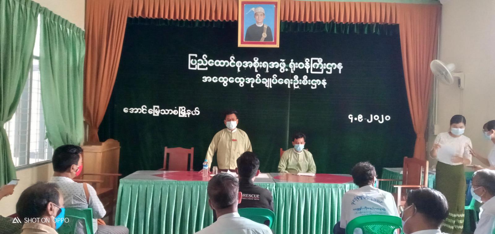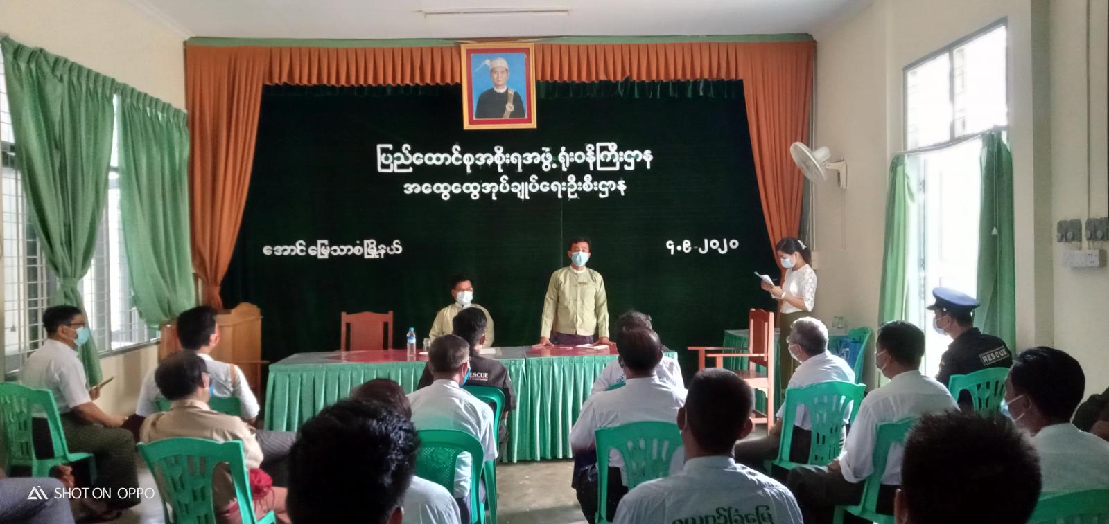 မန္တလေးတိုင်းဒေသကြီး၊ အောင်မြေသာစံမြို့နယ်တွင် စေတနာ့ဝန်ထမ်း ပံ့ပိုးကူညီရေးအသင်းအဖွဲ့များအား သယ်ယူပို့ဆောင်စရိတ်များ ထောက်ပံ့ပေးအပ်သည့်အခမ်းအနားကို ယနေ့နံနက် ၉ နာရီခွဲအချိန်က မြို့နယ်အထွေထွေအုပ်ချုပ်ရေးဦးစီးဌာနရုံး အစည်းအဝေးခန်းမ၌ ကျင်းပသည်။
