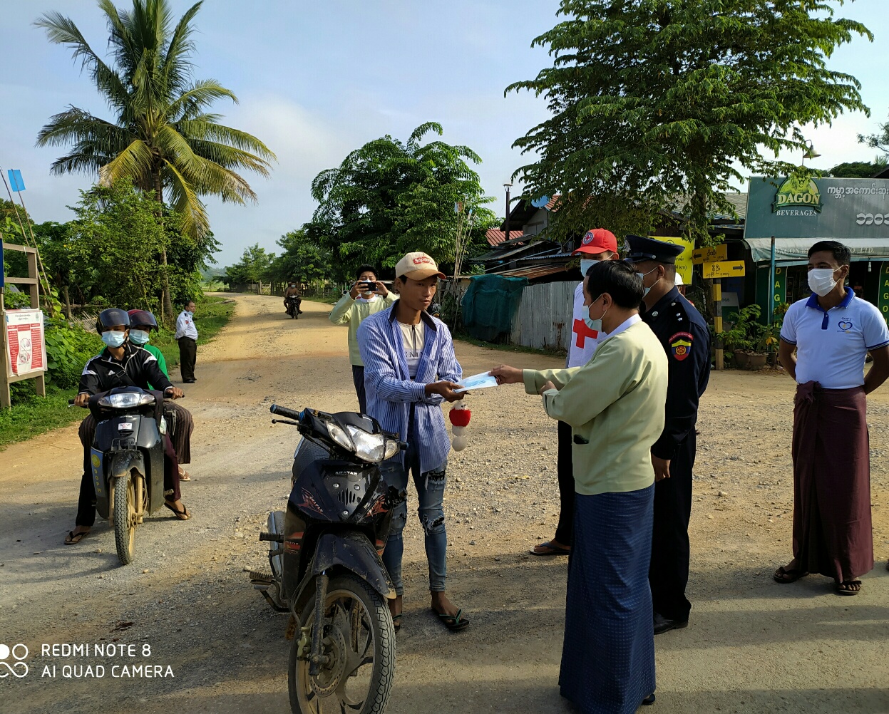 ထိုသို့ဆောင်ရွက်ရာတွင် ပြည်သူ့လွှတ်တော်ကိုယ်စားလှယ် ဦးအောင်မြင့်ရှိန်၊ မြို့နယ် ကိုဗစ်-၁၉ ရောဂါ ကာကွယ် ထိန်းချုပ်ရေးနှင့် အရေးပေါ်တုံ့ပြန်ရေးကော်မတီဥက္ကဋ္ဌ၊ မြို့နယ်အုပ်ချုပ်ရေးမှူး ဦးကျော်နိုင်နှင့် ကော်မတီဝင်များ၊ ဒုတိယမြို့နယ်အုပ်ချုပ်ရေးမှူး ဦးညိမ်းသူအောင်နှင့် မြို့နယ် အဆင့်ဌာနဆိုင်ရာ အကြီးအကဲများ၊ မြို့နယ်ကျန်းမာရေး ဝန်ထမ်းများ၊ မြို့နယ်ရဲတပ်ဖွဲ့ဝင်များ၊ မြို့နယ်မီးသတ်တပ်ဖွဲ့ဝင်များ၊ မြို့နယ်ကြက်ခြေနီတပ်ဖွဲ့ဝင်များ၊ စေတနာ့ ဝန်ထမ်းများနှင့် ရပ်ကွက်အုပ်ချုပ်ရေးမှူးနှင့် အဖွဲ့ဝင်များ ပူးပေါင်း၍ ပြည်သူများအား ကိုဗစ်-၁၉ ရောဂါ ကြိုတင် ကာကွယ်နိုင်ရေးအတွက် နှာခေါင်းစည်း(Mask)များ အခမဲ့ဖြန့်ဝေခြင်းကို ပူးပေါင်းဆောင်ရွက်ခဲ့ကြကြောင်း သိရသည်။