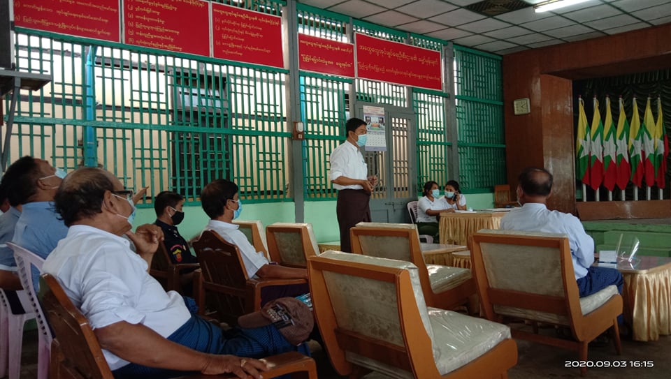 ဧရာဝတီတိုင်းဒေသကြီး၊ ဖျာပုံခရိုင်၊ ကျိုက်လတ်မြို့နယ်၊ အထွေထွေအုပ်ချုပ်ရေး ဦးစီးဌာန ရွှေဝါလတ် ခန်းမတွင် ယမန်နေ့ ညနေ ၄ နာရီက ကိုဗစ်-၁၉ ကာကွယ်ထိန်းချုပ်ကုသရေးလုပ်ငန်းများအတွက် ညှိနှိုင်းဆွေးနွေးပွဲကျင်းပ ခဲ့သည်။