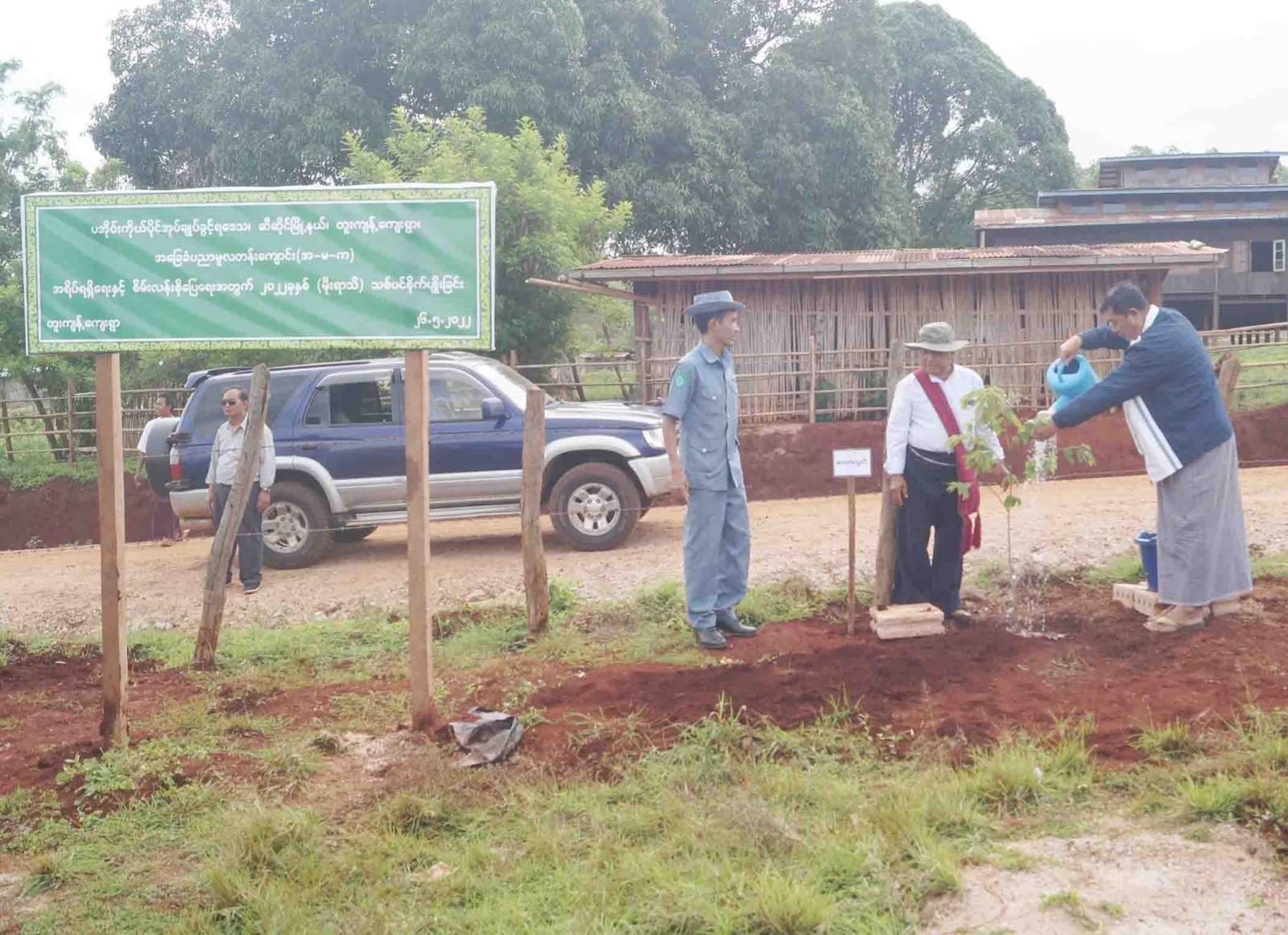 ကွင်းဆင်းကြည့်ရှုစစ်ဆေးရာတွင် ပအိုဝ်းကိုယ်ပိုင်အုပ်ချုပ်ခွင့်ရဒေသစီမံအုပ်ချုပ်ရေးအဖွဲ့ ဥက္ကဋ္ဌ ဦးခွန်ရဲထွေး၊ အတွင်းရေးမှူး ဦးတင်ထူးမောင်နှင့်ဒေသဖွံ့ဖြိုးမှုကြီးကြပ်ရေးရုံးမှ လက်ထောက်ညွှန်ကြားရေးမှူး ဦးညီညီလွင်၊ မြို့နယ်စီမံအုပ်ချုပ်ရေးအဖွဲ့ဥက္ကဋ္ဌ ဦးအောင်ဆန်းဦးနှင့်အဖွဲ့ဝင်များ၊ မြို့နယ်သစ်တောဦးစီးအရာရှိ ဦးနေလင်းဦးနှင့်ဝန်ထမ်းများတို့သည် လွယ်ပွတ်ကျေးရွာအုပ်စု၊ ပုံးလောင်းကျေးရွာ အခြေခံမူလတန်းကျောင်း(ခွဲ)နှင့် တူးကျန့်ကျေးရွာ အခြေခံမူလတန်းကျောင်းဝန်းအတွင်း အရိပ်ရရှိရေးနှင့် စိမ်းလန်းစိုပြေရေးအတွက် ဆရာ/ဆရာမများ၊ ကျေးရွာနေ ပြည်သူများနှင့်အတူ ခါတော်မီ၊ စိန်ပန်းနီ၊ စိန်ပန်းပြာနှင့် မာတာကွက်စသည့် ပျိုးပင်ပေါင်း (၁၂၅)ပင်တို့ကို စိုက်ပျိုးပေးခဲ့ပြီး ကျောင်းဝန်းအတွင်းလိုအပ်သည်များကို လမ်းညွှန်မှာကြားခဲ့သည်။