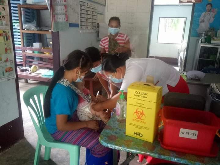 ရှမ်းပြည်နယ်(အရှေ့ပိုင်း)၊ တာချီလိတ်ခရိုင်၊ တာလေမြို့ တွင် အသက်(၁)နှစ်အောက် ကလေးငယ် များအား ပုံမှန်ကာကွယ်ဆေးထိုးခြင်း၊ တိုက်ကျွေးခြင်းများကို စက်တင်ဘာလ ၄ ရက် နံနက်ပိုင်းက တာလေမြို့ နားယောင်းကျေးရွာအုပ်စုအတွင်းရှိ နားအွန်ကျေးရွာ ကျေးလက်ကျန်းမာရေးဌာနခွဲမှ သားဖွားဆရာမ ဒေါ်ခင်ခင်ရီ နှင့် ဝန်ထမ်းများကဆောက်ရွက်ခဲ့သည်။