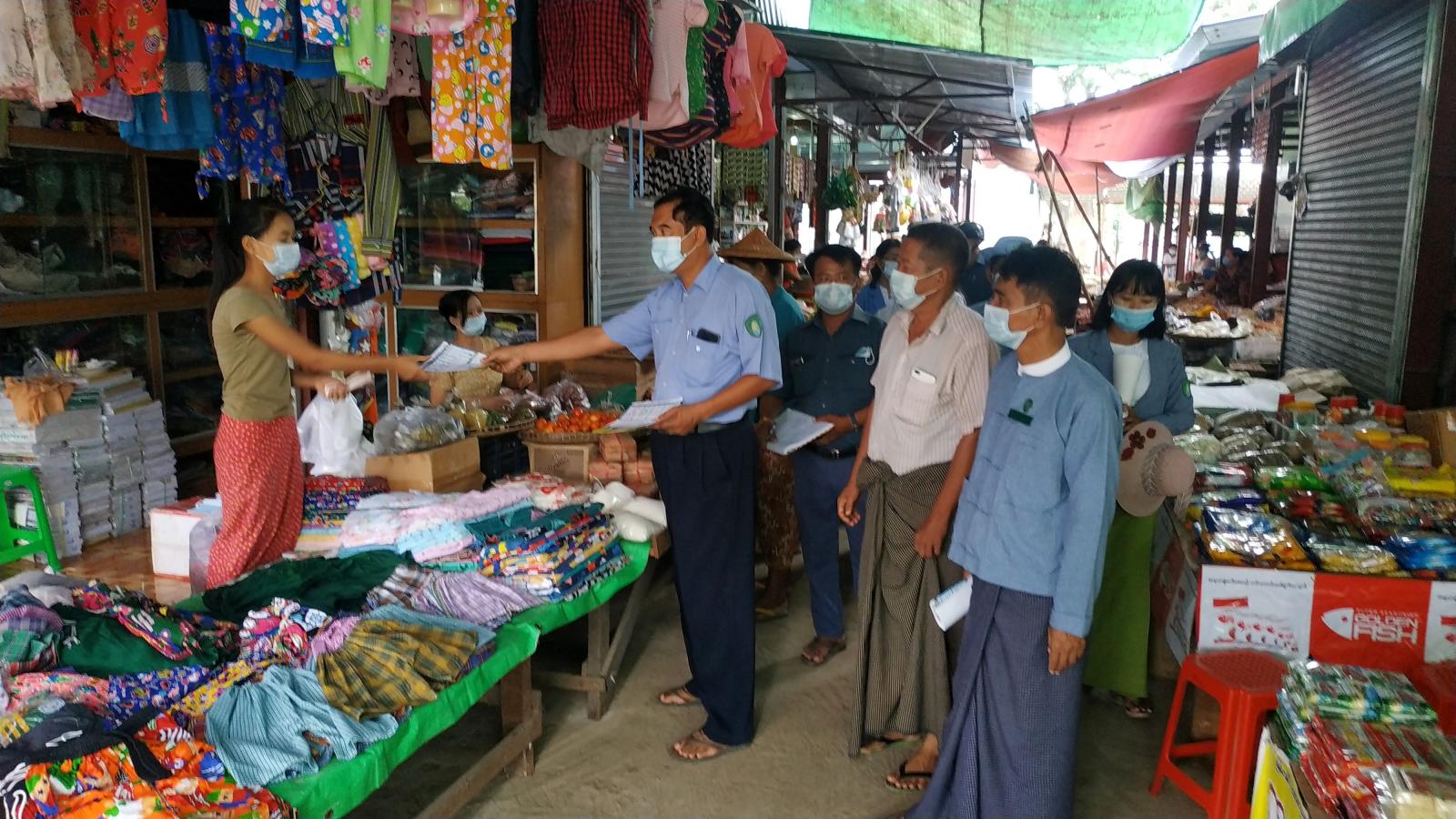 ထိုသို့စစ်ဆေးရာတွင် မြို့နယ်စည်ပင်သာယာရေးကော်မတီများနှင့် ဝန်ထမ်းများ၊ ဈေးကော်မတီများ၊ တာဝန်ရှိသူများ ပူးပေါင်းပြီး ဈေးရောင်း/ဈေးဝယ်သူများကို နှာခေါင်းစည်း တပ်ဆင်ကြရန် နှိုးဆော်ခြင်း၊ အပူချိန်တိုင်းခြင်း၊ အသိပညာပေး လက်ကမ်းစာစောင် များ ဖြန့်ဝေခြင်း ဆောင်ရွက်လျက်ရှိသည်။
