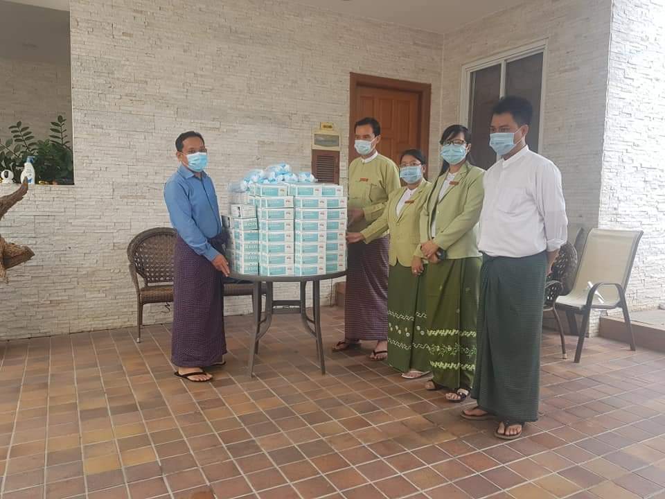 ပြည်သူများ ကိုဗစ်-၁၉ ရောဂါမှ ကာကွယ်နိုင်ရန်နှင့် ရောဂါပျံ့ပွားမှုမရှိစေရေးအတွက် ရန်ကုန်အနောက်ပိုင်းခရိုင် မရမ်းကုန်းမြို့နယ်တွင် ယမန်နေ့မွန်းလွဲ ၃ နာရီက မြို့နယ်ကိုဗစ်-၁၉ ကာကွယ် ထိန်းချုပ်ရေးနှင့် အရေပေါ်တုံ့ပြန်ရေး ကော်မတီသို့ မြို့နယ်အတွင်း အသုံးပြုနိုင်ရန် နှာခေါင်းစည်း အခုရေတစ်သောင်း လာရောက်လှူဒါန်းခဲ့သည်။