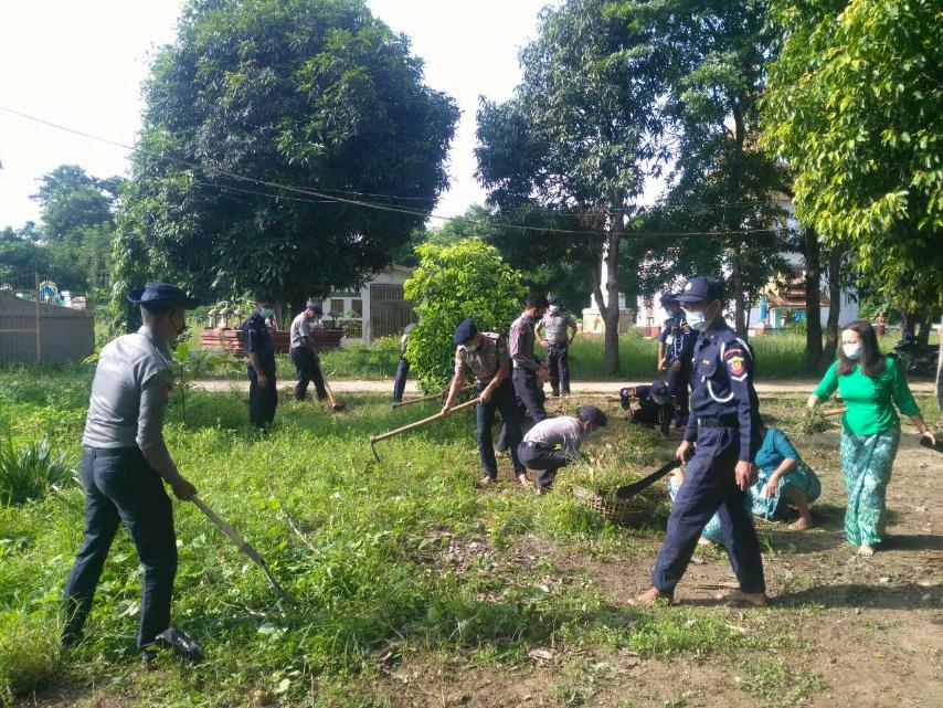 (၅၆)နှစ်မြောက် မြန်မာနိုင်ငံရဲတပ်ဖွဲ့နေ့ အထိမ်းအမှတ် ပြည်သူ့အကျိုးပြုလုပ် ငန်းများကို မြို့နယ်ရဲတပ်ဖွဲ့မှူး ရဲမှူးသက်ဝေ ဦးဆောင်၍ မြန်အောင်မြို့မရဲစခန်းမှူး ဒုရဲမှူးကျော်ညွန့်နှင့် ရဲတပ်ဖွဲ့ဝင်များနှင့်မိသားစုဝင်များ၊ မြို့နယ်မီးသတ်ဦးစီးမှူး ဦးကိုကိုသူ နှင့် မီးသတ်တပ်ဖွဲ့ဝင်များက မြန်အောင်မြို့ မဟာဓမ္မိကာရာမကျောင်းတိုက်ဝန်း အတွင်း စုပေါင်းသန့်ရှင်းရေး ဆောင်ရွက်ခဲ့ ကြောင်းသိရသည်။