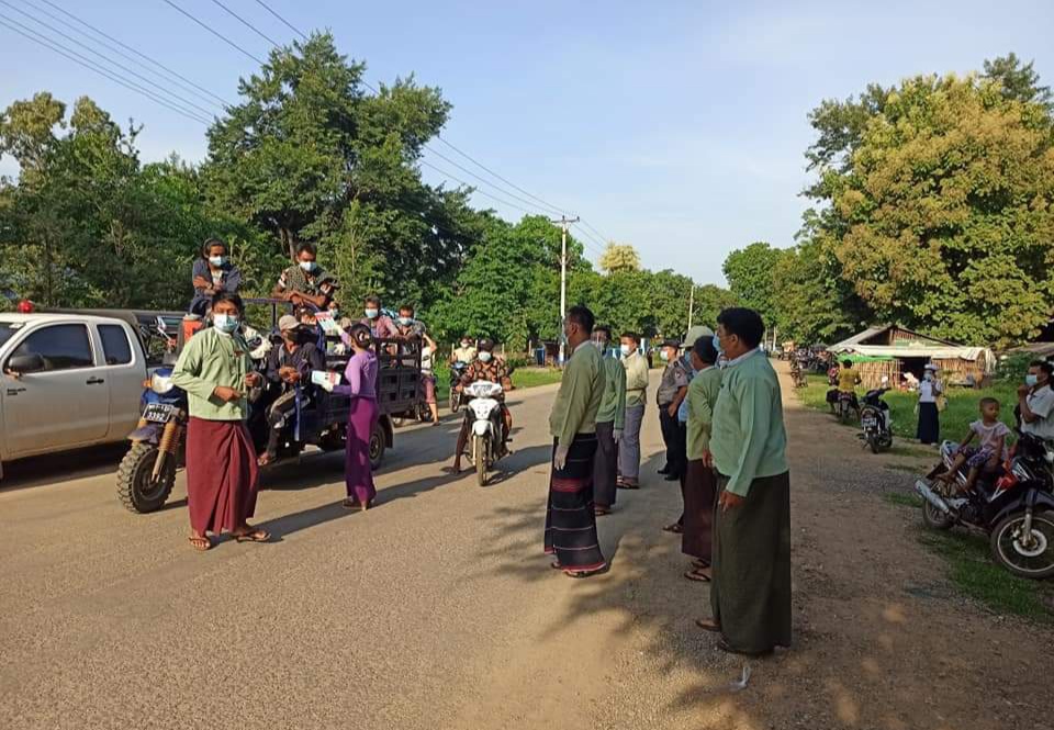 ထိုသို့ဆောင်ရွက်ရာတွင် ကိုဗစ်-၁၉ရောဂါထိန်းချူပ်ရေးနှင့်အရေးပေါ်တုံ့ပြန်ရေးကော်မတီဥက္ကဌ မြို့နယ် အုပ်ချုပ်ရေးမှူးဦးဆန်းထွန်းနှင့် ကော်မတီဝင်များ၊ မြို့နယ်ရဲတပ်ဖွဲ့မှူးရဲမှူးကျော်နိုင်နှင့် ရဲတပ်ဖွဲ့ဝင်များ၊ မြို့နယ်မီးသတ်ဦးစီးမှူးဦးနိုင်လင်းဦးနှင့်တပ်ဖွဲ့ဝင်များ၊ ကျေးရွာအုပ်စု အုပ်ချုပ်ရေးမှူးများ၊ မြို့နယ်အမျိုးသမီးရေးရာ အဖွဲ့ဝင်များနှင့် ကျန်းမာရေးဝန်ထမ်းများပူးပေါင်း၍ နှာခေါင်းစည်း (mask)တပ်ဆင် သွားလာခြင်း မရှိသောလမ်းသွားလမ်းလာပြည်သူများ၊ဆိုင်ကယ်၊သုံးဘီး နှင့် မော်တော် ယာဉ်ပေါ်တွင်လိုက်ပါလာသော ခရီးသွား ပြည်သူများအား ကိုဗစ်-၁၉ရောဂါကူးစက်ပျံ့ပွားမှုမဖြစ်ပေါ်စေ ရေးအပြင်ထွက်တိုင်းမဖြစ်မနေ နှာခေါင်းစည်း(mask) တပ်ဆင်ပြီးသွားလာကြ ရန် အသိပညာပေးခြင်း၊ ဆိုင်ကယ်စီးသူများဆိုင်ကယ်စီးဦးထုပ်ဆောင်းမောင်းနှင်ရေးယာဉ်စည်းကမ်း၊လမ်းစည်းကမ်းအသိပညာပေးခြင်းနှင့် နှာခေါင်းစည်း(mask)မတပ်သူများအား တစ်ဦးလျှင် နှာခေါင်းစည်းနှစ်ခု ငွေကျပ် ၂၀၀၀ နှုန်းဖြင့် ဒဏ်ရိုက်အရေးယူခြင်း များဆောင်ရွက် ခဲ့ကြောင်း သိရသည်။